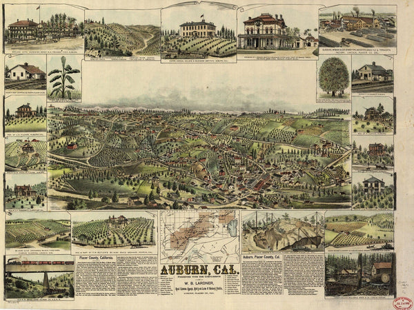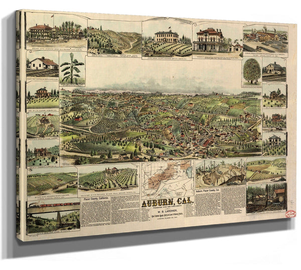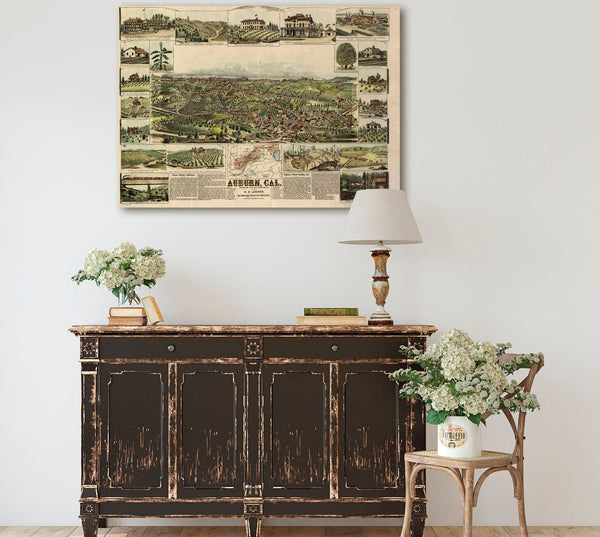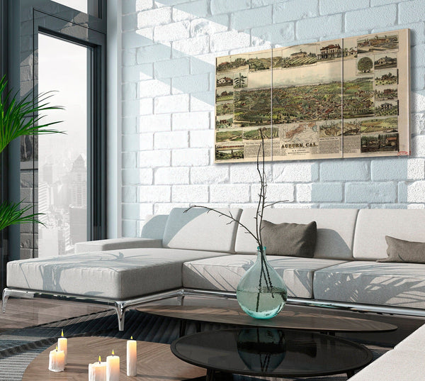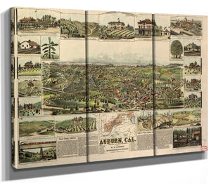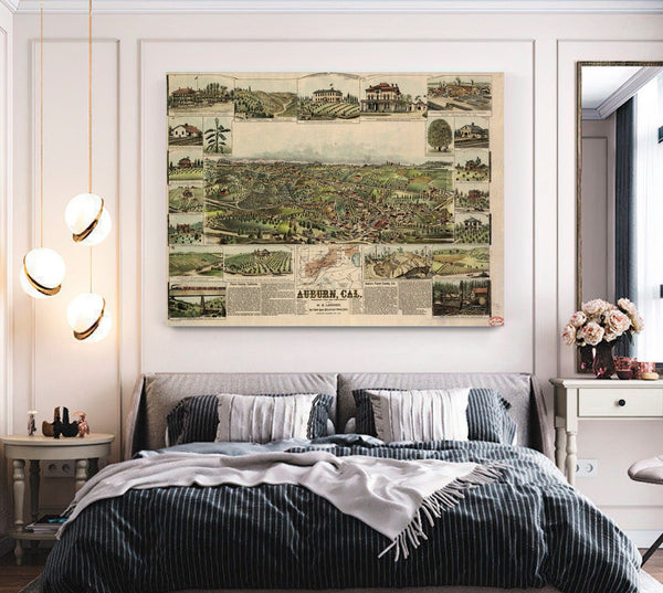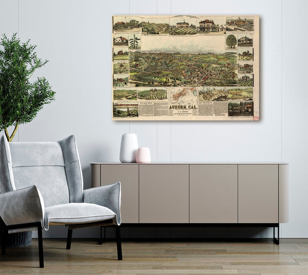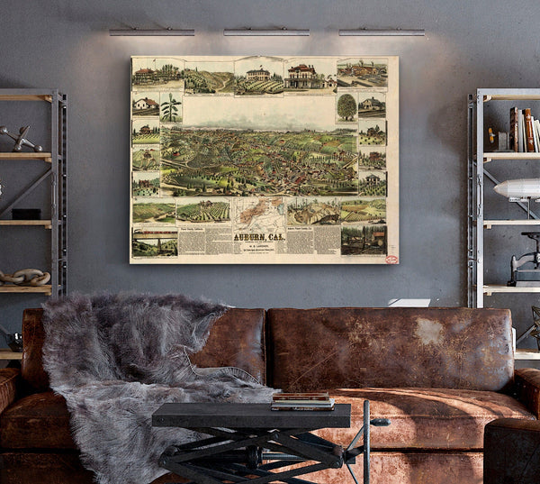 • Bella Frye Home & Garden > Decor > Artwork Auburn California Vintage Map Wall Art - Bird's Eye View City Canvas Art