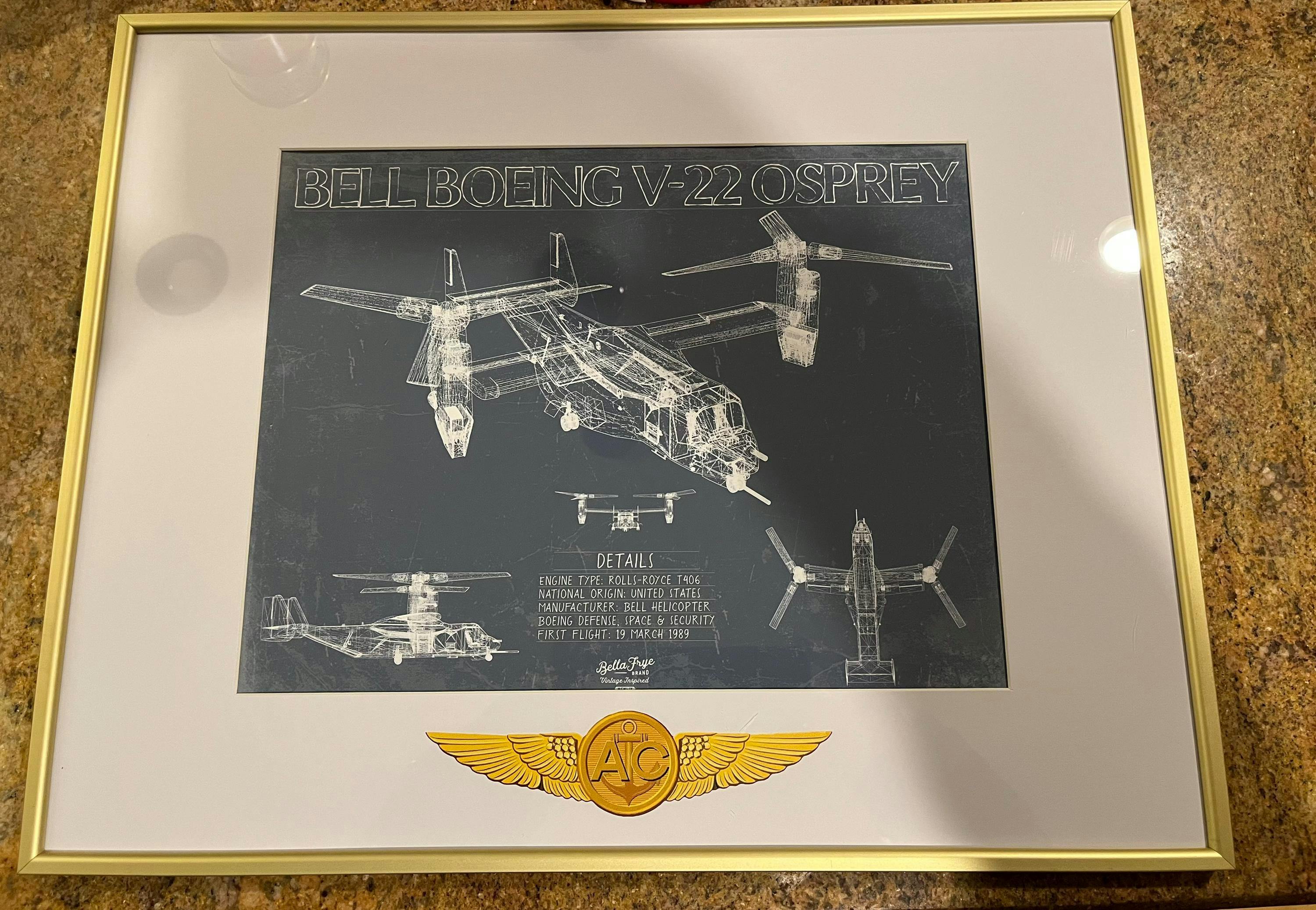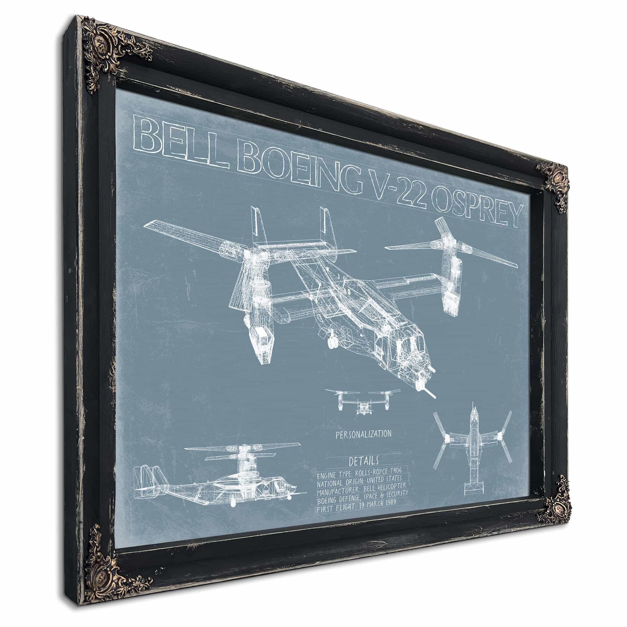 • Bella Frye Home & Garden > Decor > Artwork Bell Boeing V-22 Osprey Aircraft Blueprint Wall Art - Original Aviation Plane Print