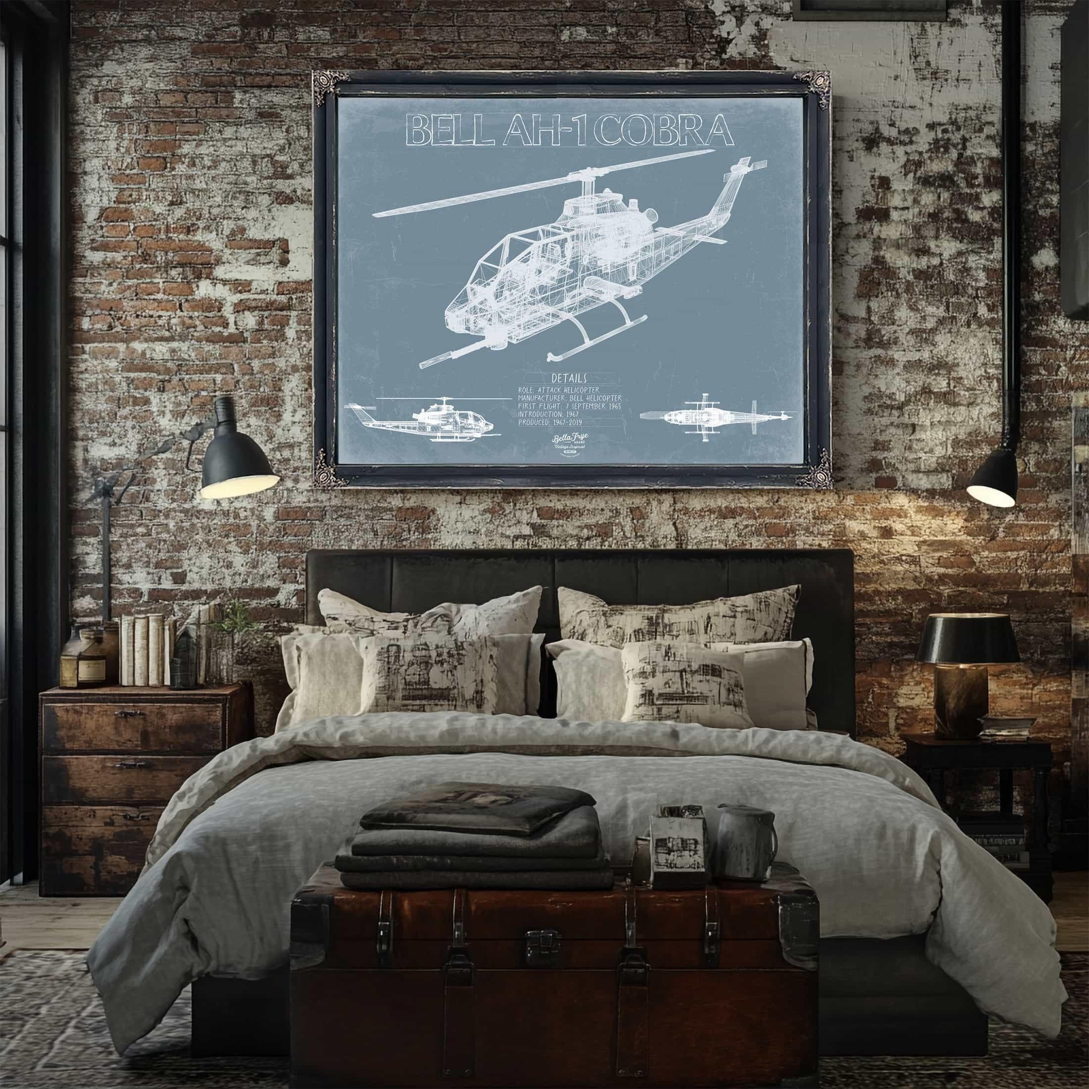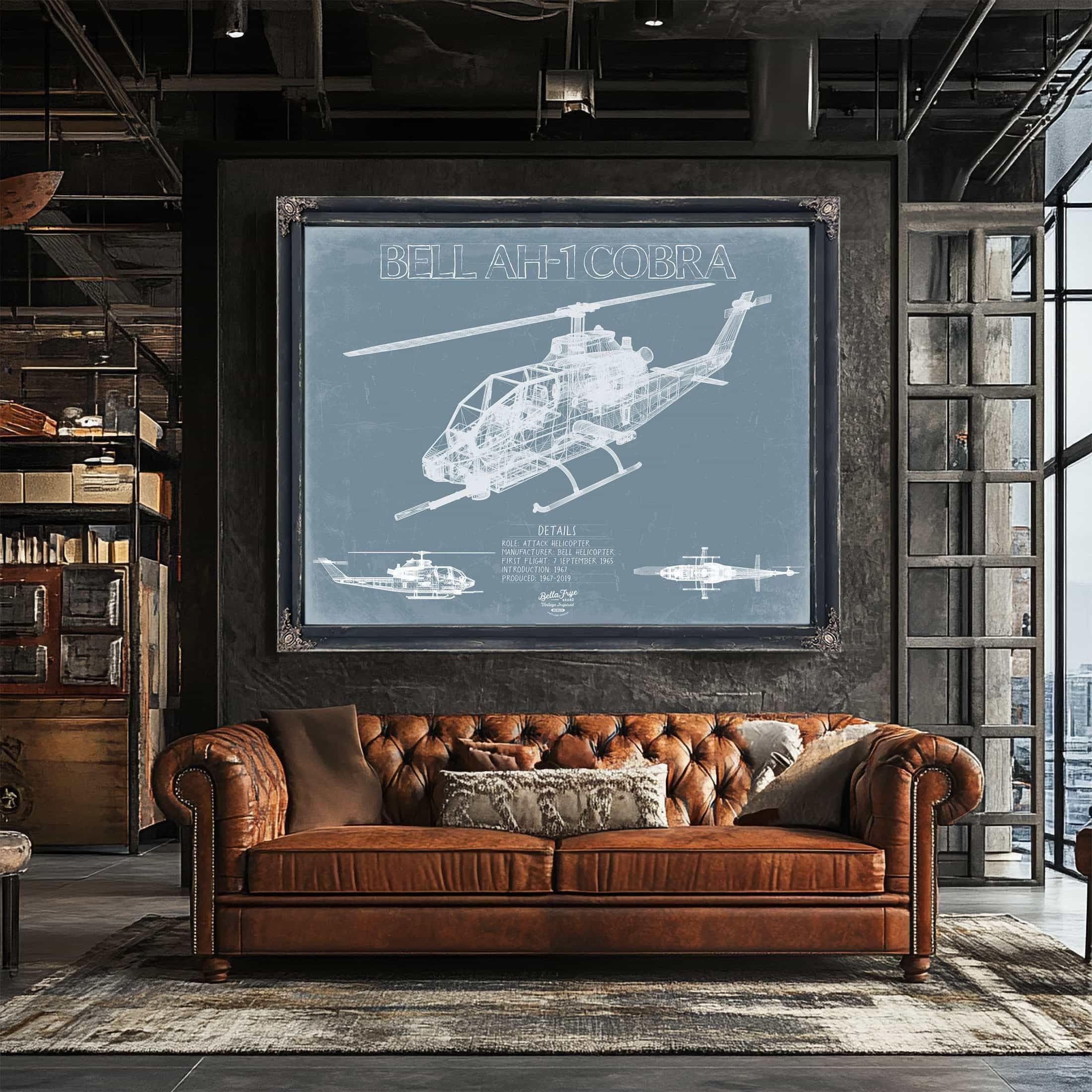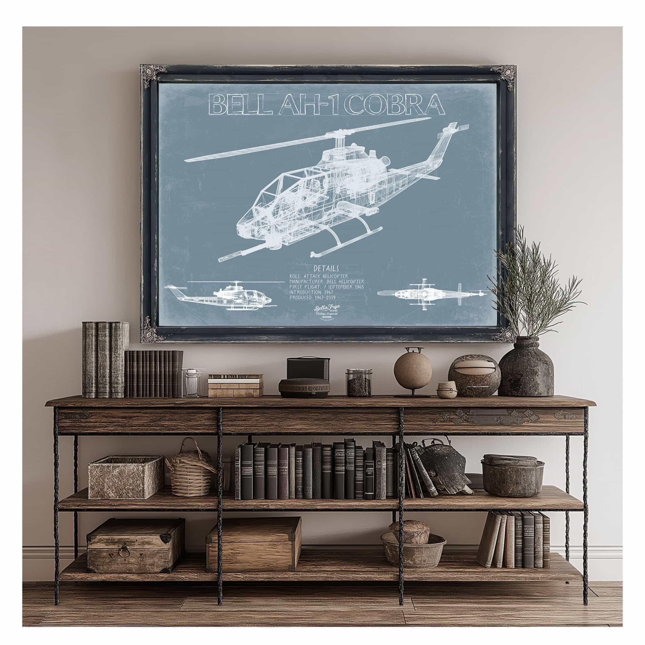 • Bella Frye Home & Garden > Decor > Artwork Bell AH-1 Cobra Helicopter Blueprint Wall Art - Original Aviation Print