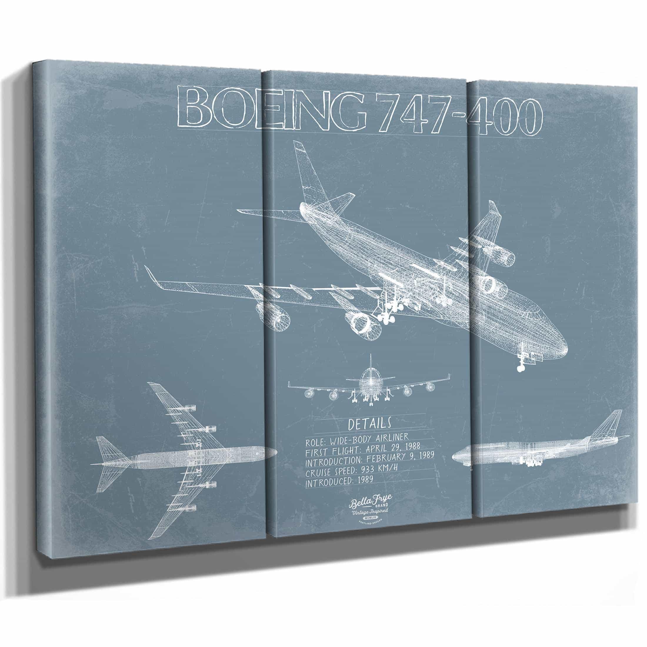• Bella Frye Home & Garden > Decor > Artwork Boeing 747-400 Aircraft Blueprint Wall Art - Original Aviation Plane Print