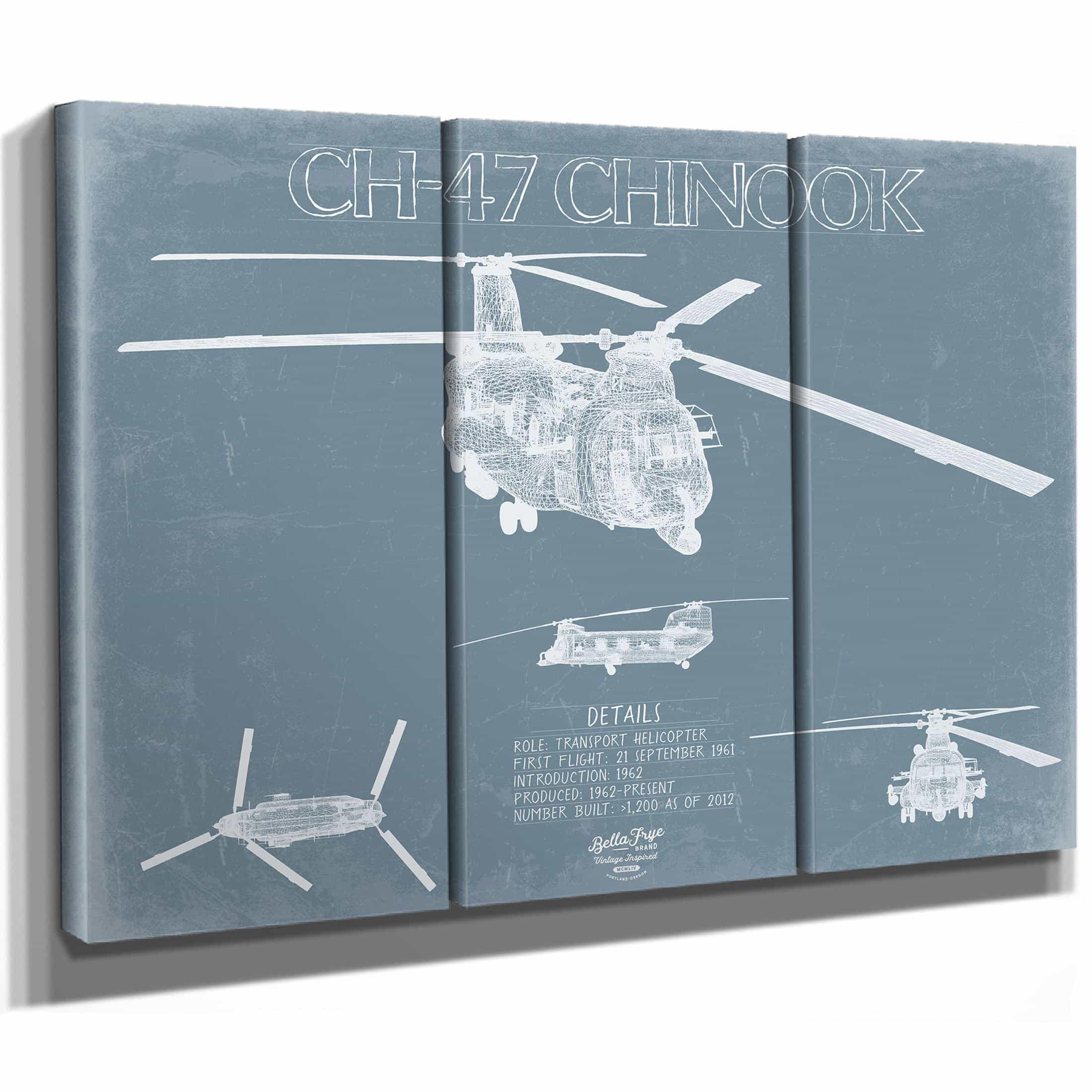 • Bella Frye Home & Garden > Decor > Artwork Boeing CH-47 Chinook Helicopter Blueprint Wall Art - Original Aviation Print