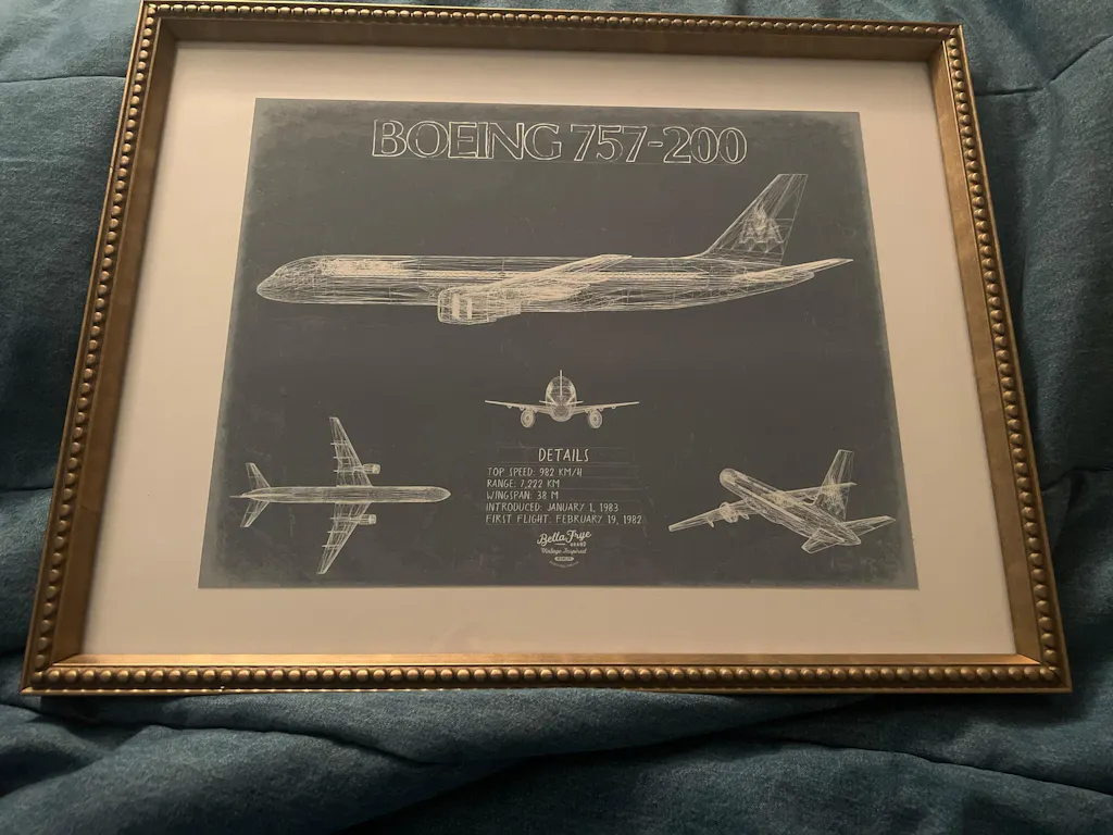 • Bella Frye Home & Garden > Decor > Artwork Boeing 757 200 Aircraft Blueprint Wall Art - Original Aviation Plane Print