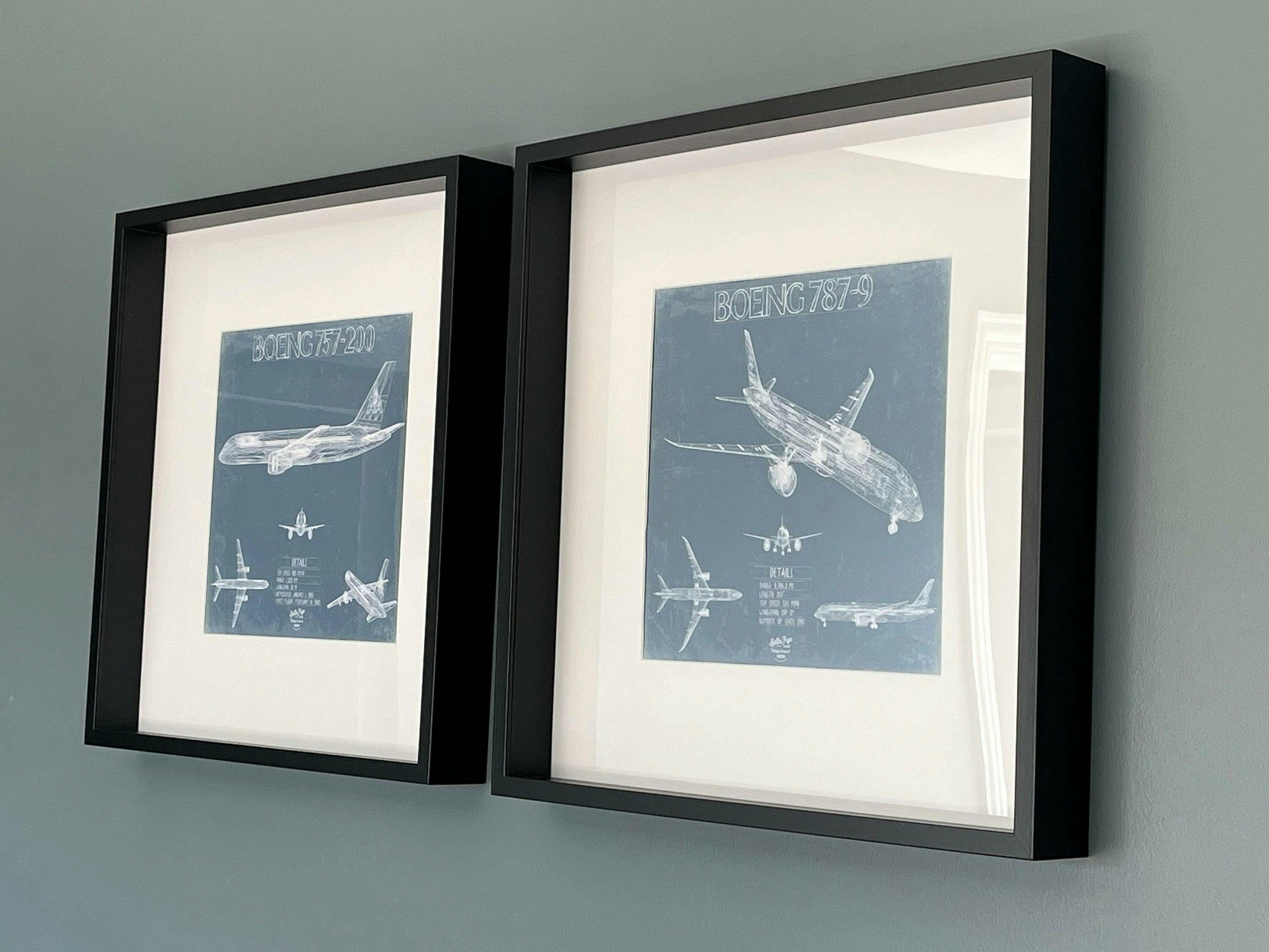 • Bella Frye Home & Garden > Decor > Artwork Boeing 787-9 Aircraft Blueprint Wall Art - Original Aviation Plane Print