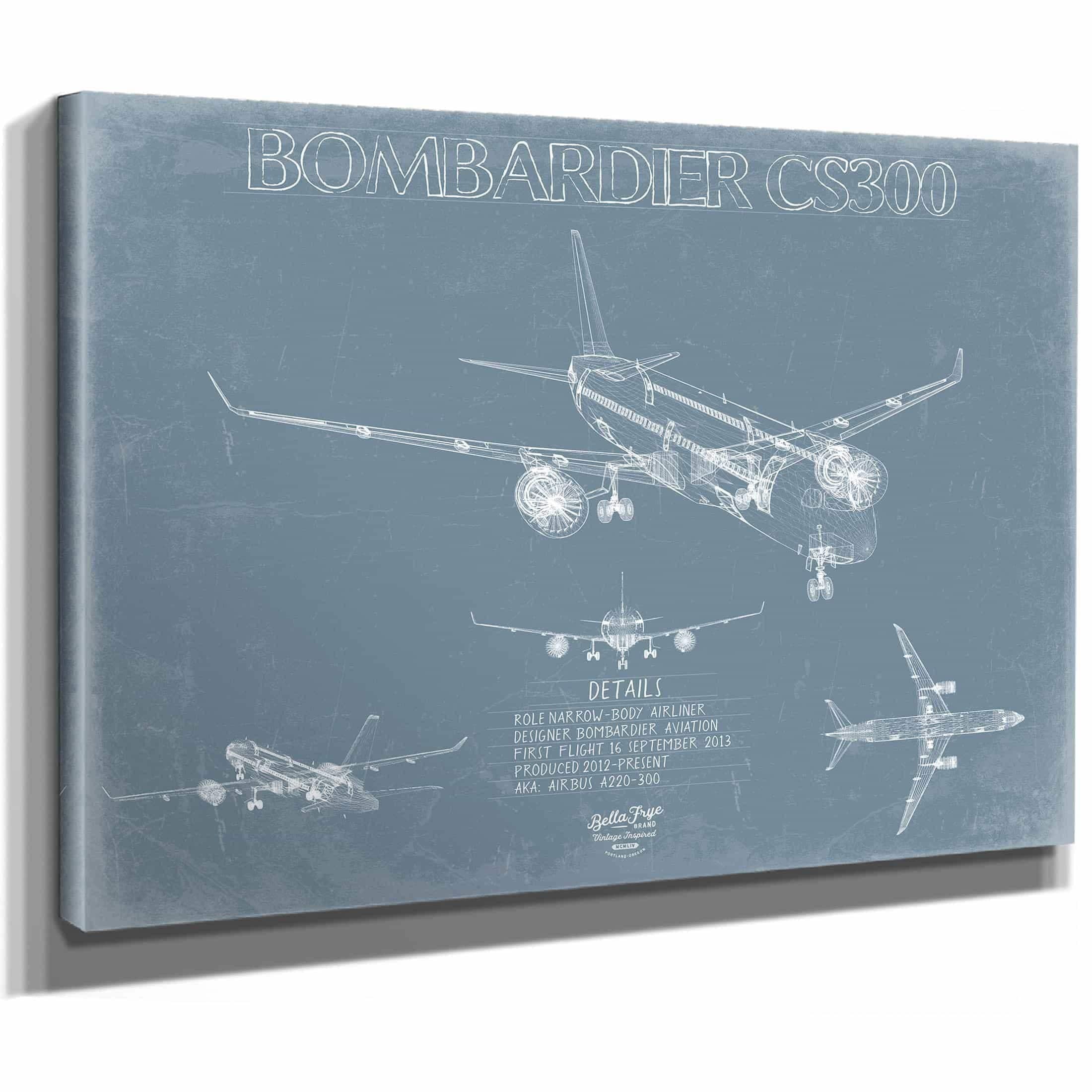 • Bella Frye Home & Garden > Decor > Artwork Bombardier CS300 Aircraft Blueprint Wall Art - Original Aviation Plane Print