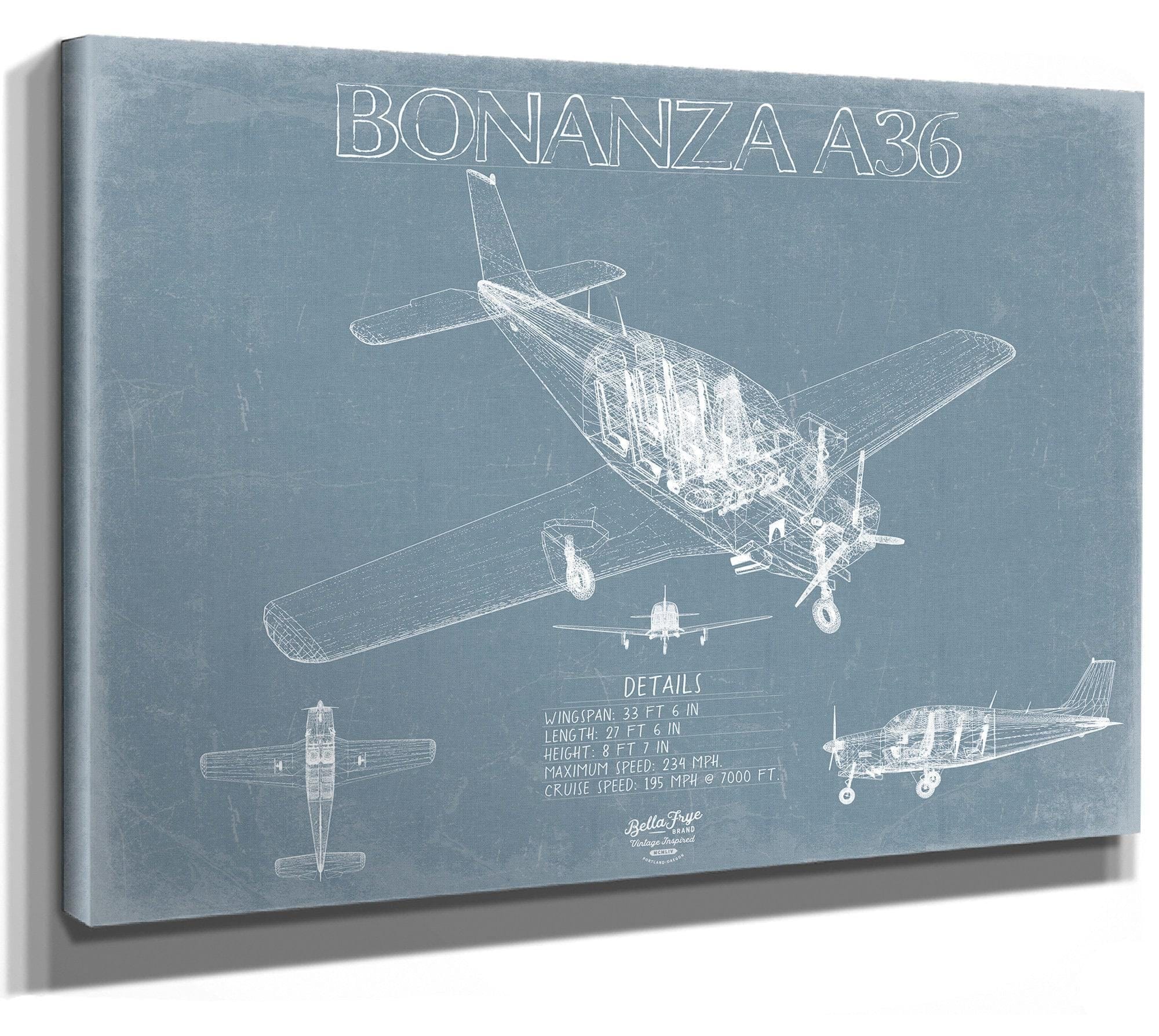 • Bella Frye Home & Garden > Decor > Artwork Beechcraft Bonanza A36 Aircraft Blueprint Wall Art - Original Fighter Plane Print