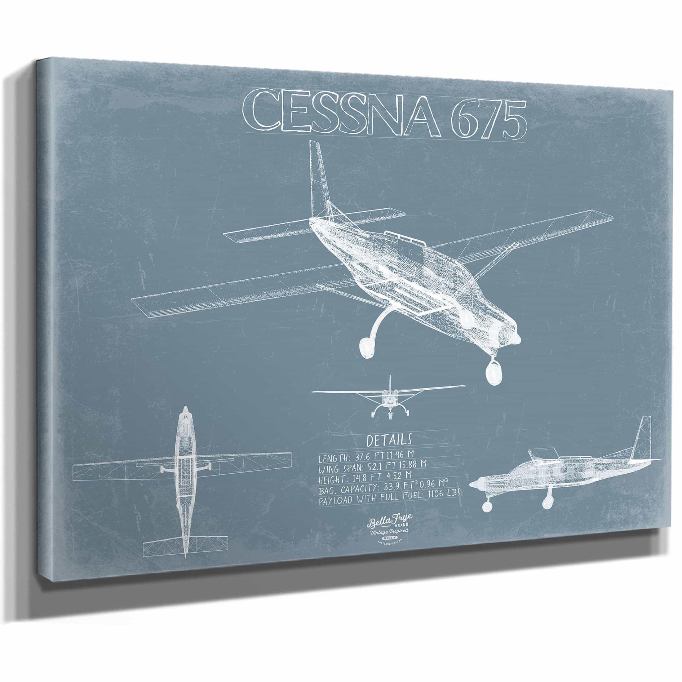 • Bella Frye Home & Garden > Decor > Artwork Cessna 675 Skydiver Aircraft Blueprint Wall Art - Original Airplane Print