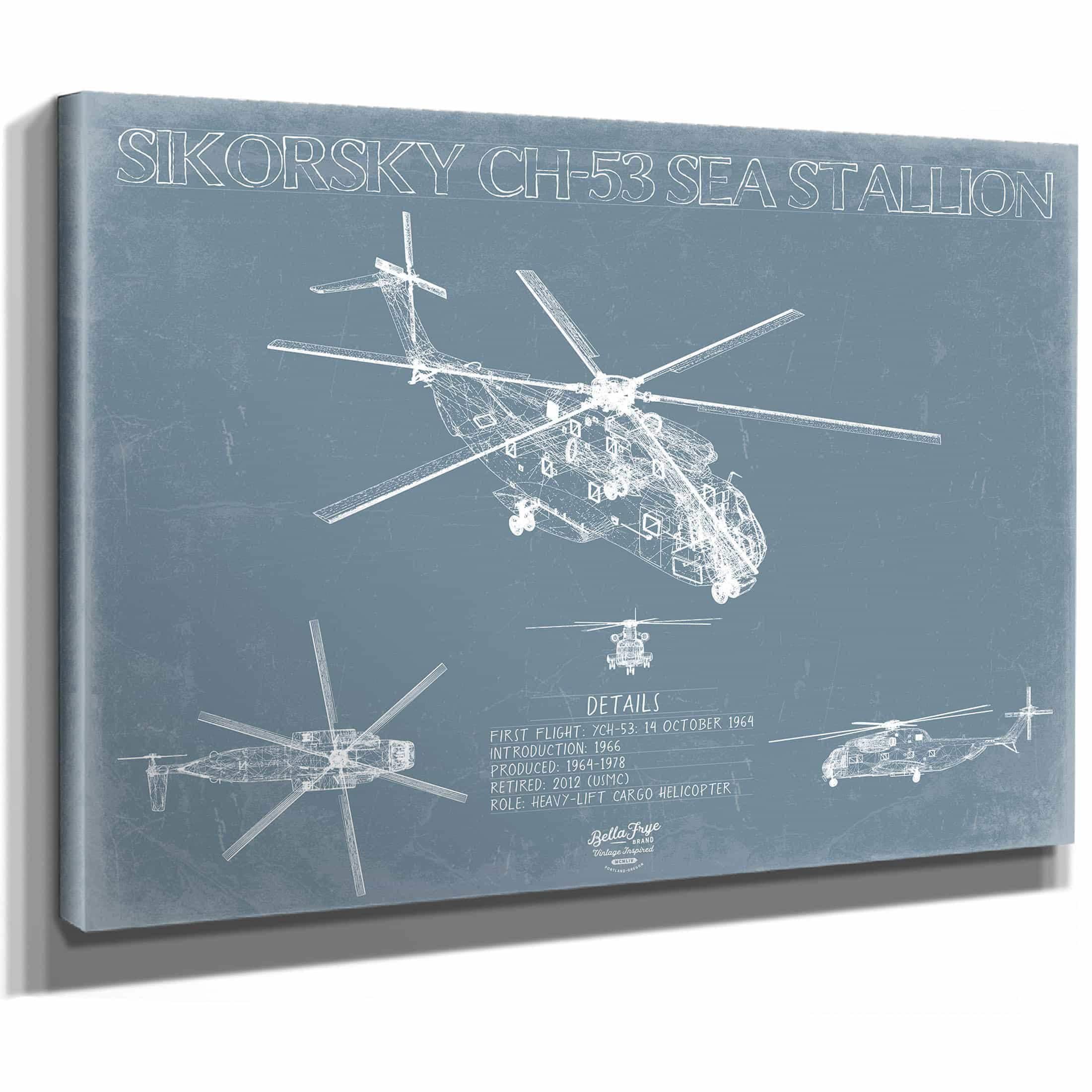• Bella Frye Home & Garden > Decor > Artwork Sikorsky CH-53 Sea Stallion Aircraft Blueprint Wall Art - Original Jet Aviation Print