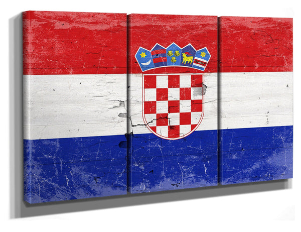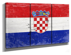 • Bella Frye Home & Garden > Decor > Artwork 60" x 40" / 3 Panel Canvas Wrap Croatia Flag Wall Art - Vintage Croatia Flag Sign Weathered Wood Style on Canvas
