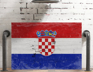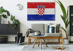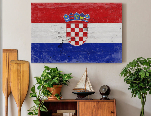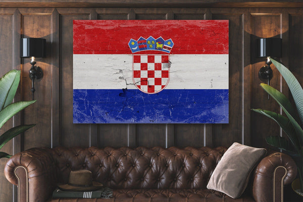 Croatia Flag Wall Art - Vintage Croatia Flag Sign Weathered Wood Style on Canvas