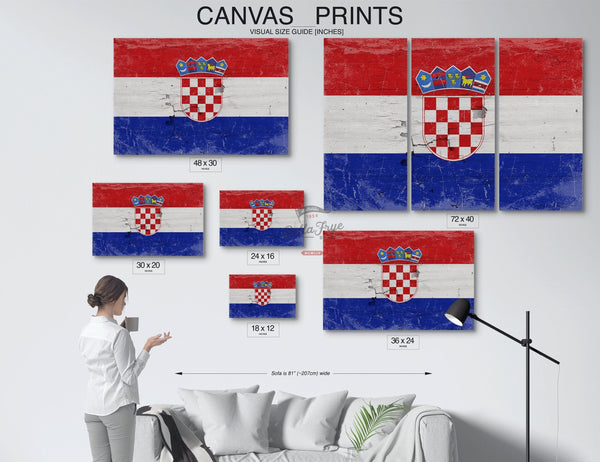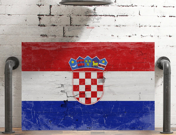 • Bella Frye Home & Garden > Decor > Artwork Croatia Flag Wall Art - Vintage Croatia Flag Sign Weathered Wood Style on Canvas