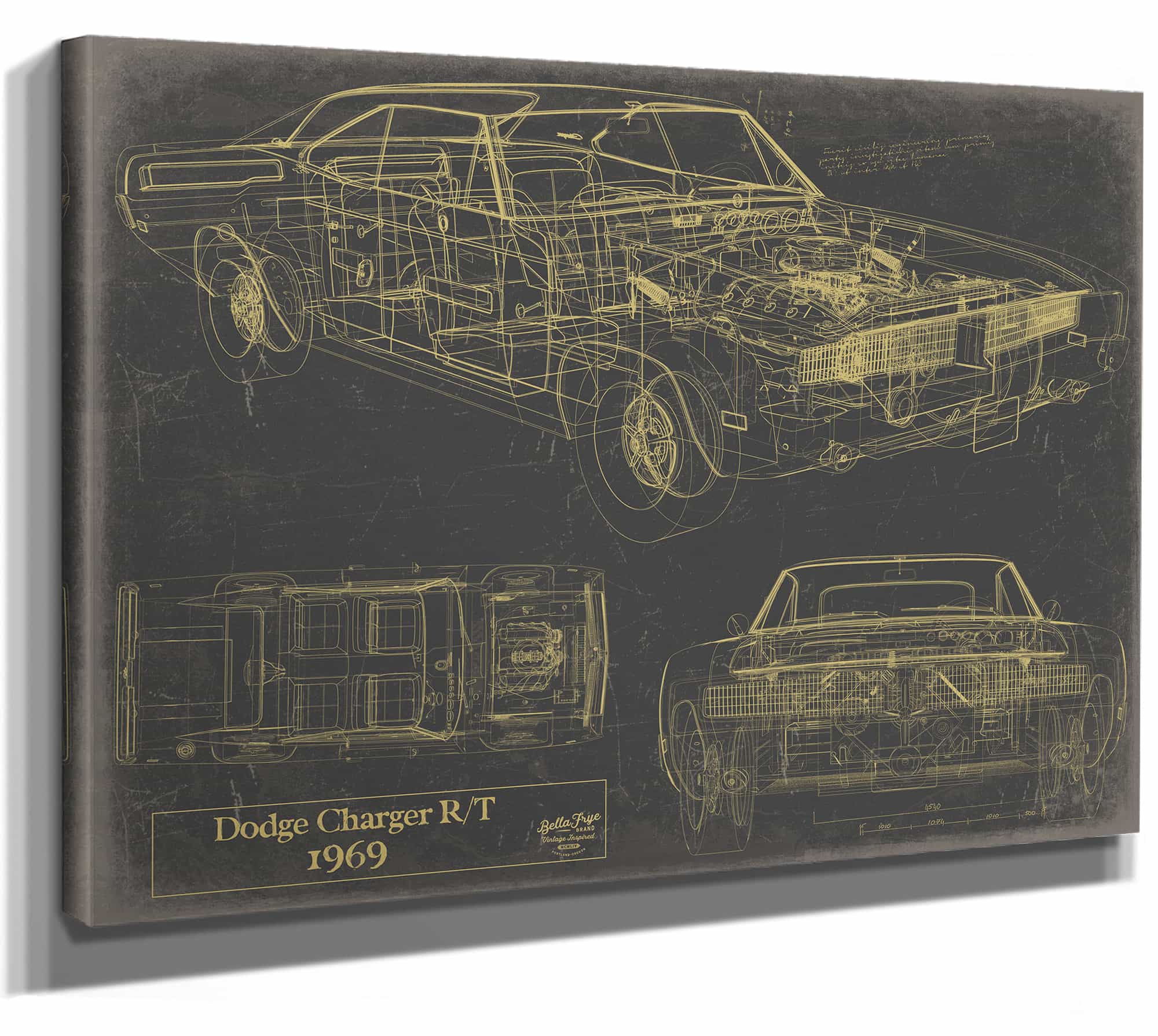 • Bella Frye Home & Garden > Decor > Artwork 24" x 18" / Stretched Canvas Wrap / Blue Dodge Charger RT 1969 Original Artwork