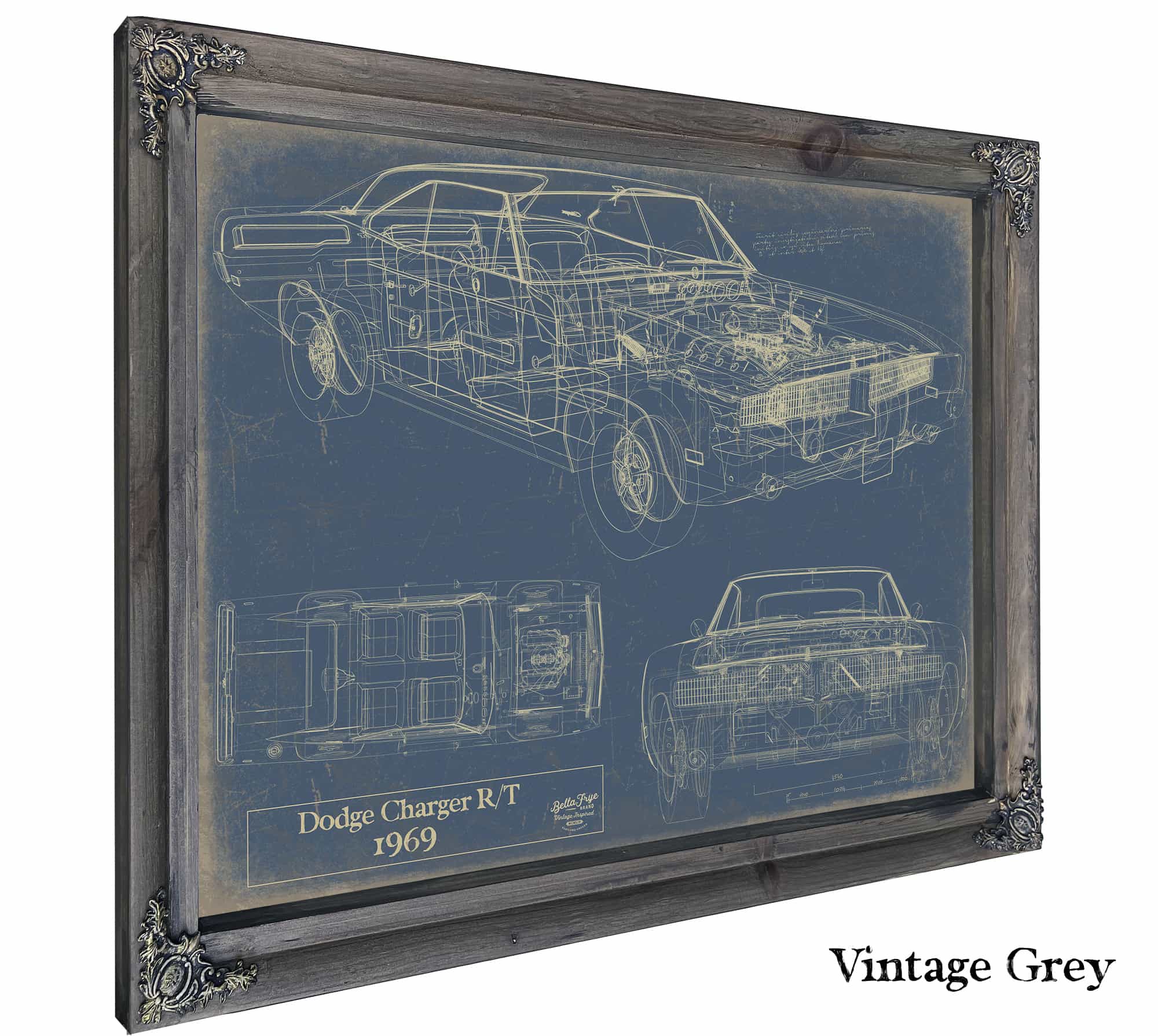 • Bella Frye Home & Garden > Decor > Artwork 24" x 18" / Grey Frame / Blue Dodge Charger RT 1969 Original Artwork