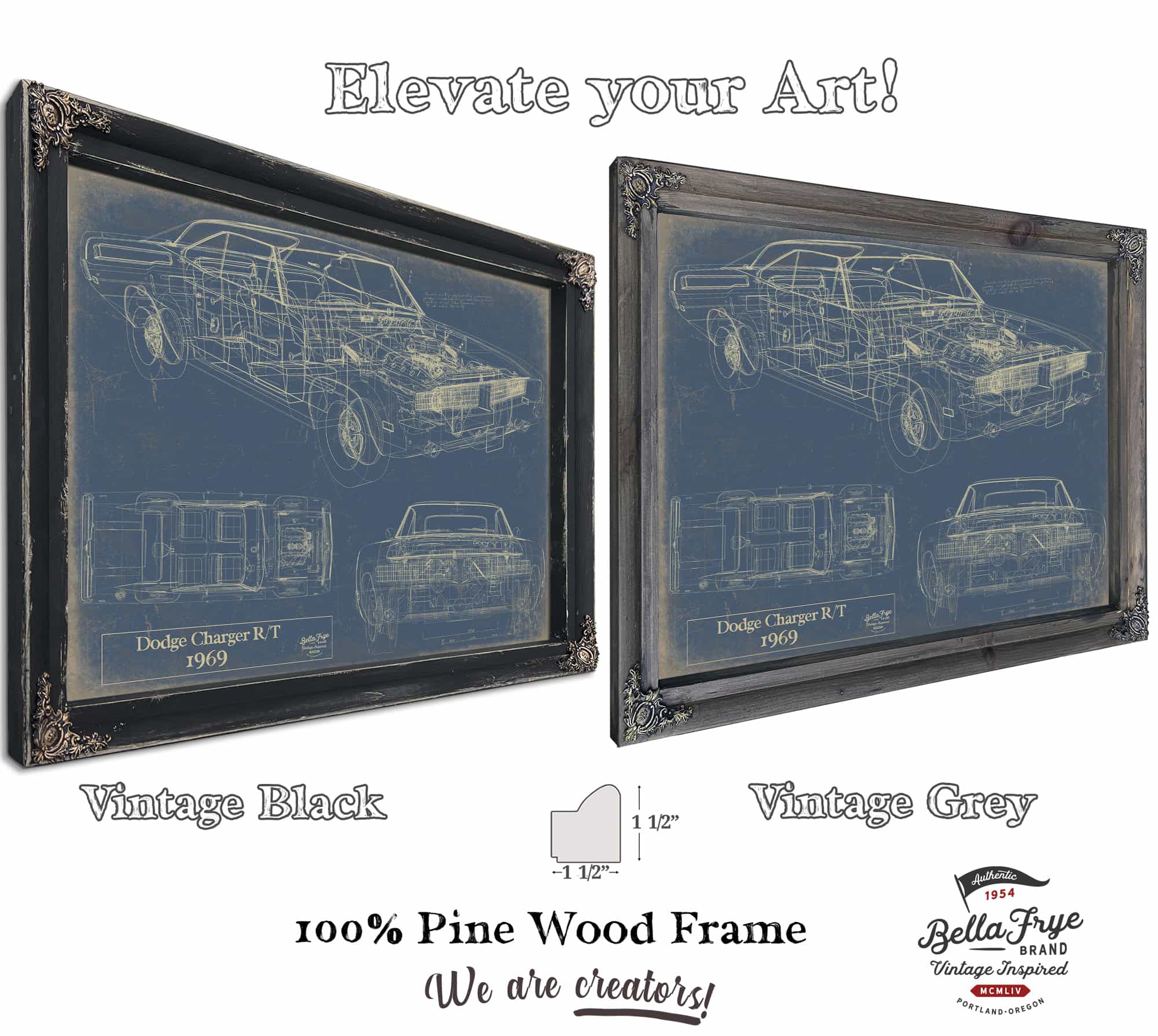 • Bella Frye Home & Garden > Decor > Artwork 24" x 18" / Black Frame / Blue Dodge Charger RT 1969 Original Artwork