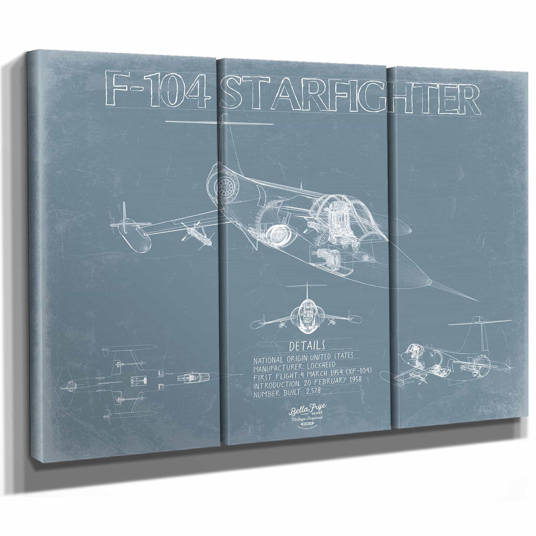 • Bella Frye Home & Garden > Decor > Artwork F-104 Starfighter Aircraft Blueprint Wall Art - Original Airplane Print