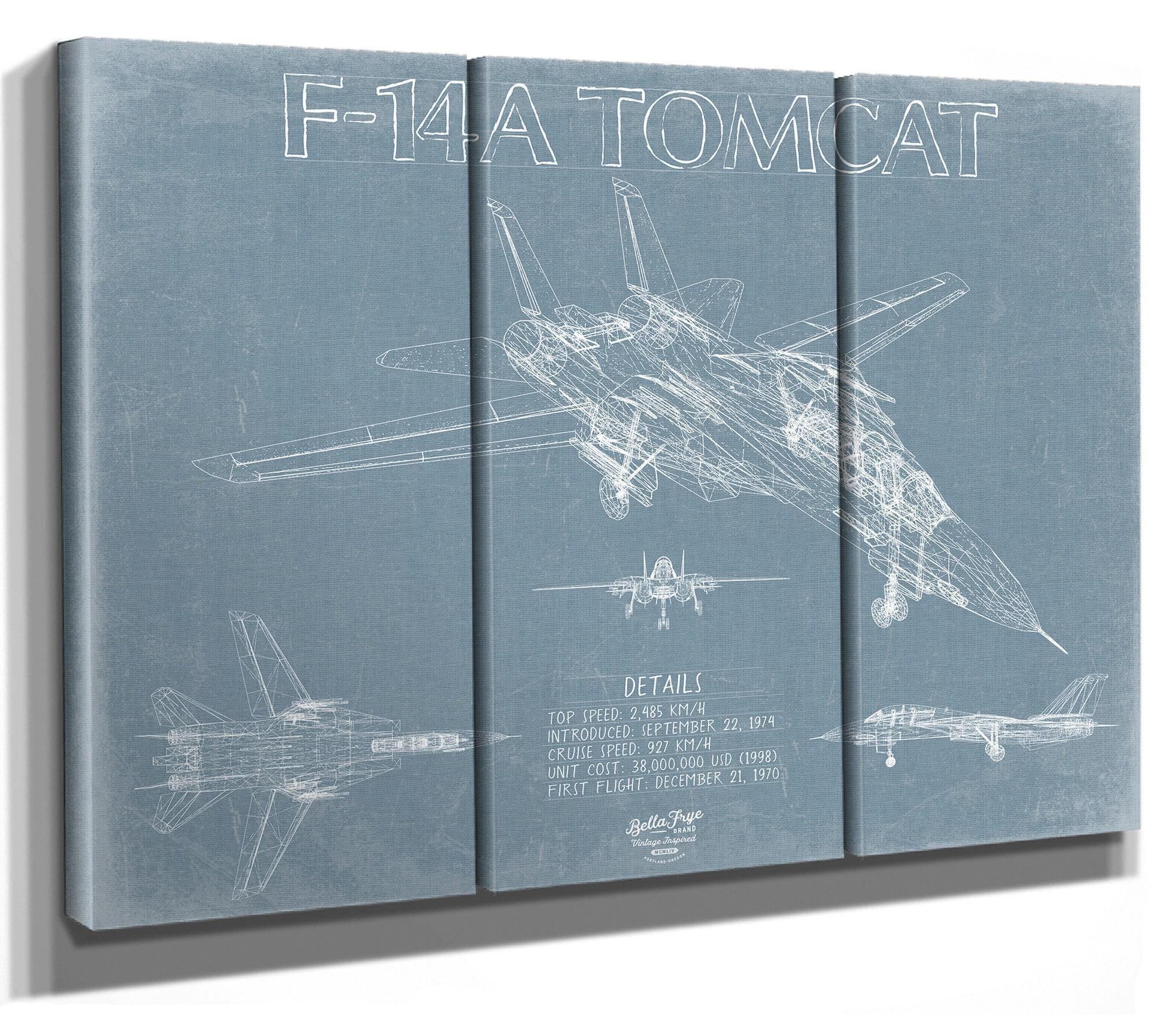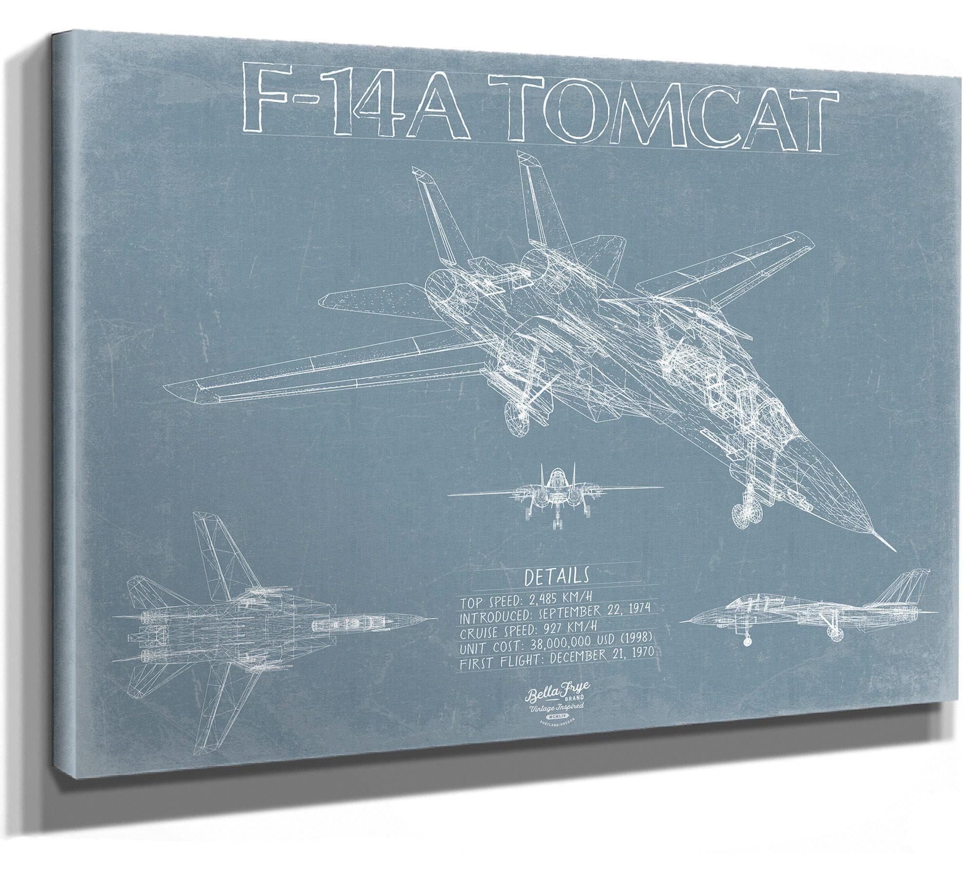 • Bella Frye Home & Garden > Decor > Artwork F-14A Tomcat Top Gun Aircraft Blueprint Wall Art - Original Airplane Print