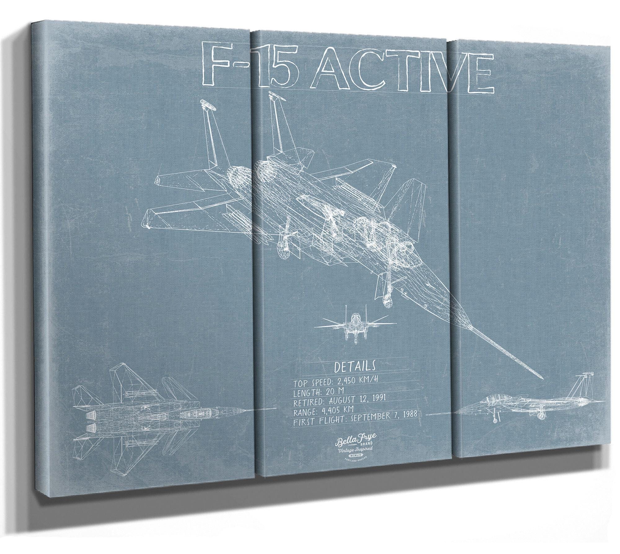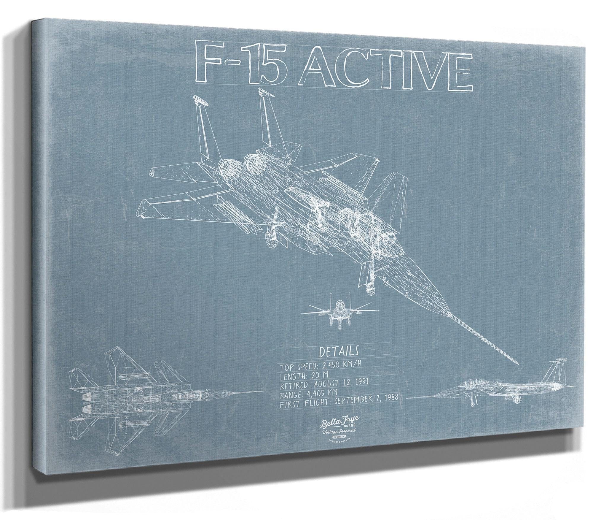 • Bella Frye Home & Garden > Decor > Artwork F-15 ACTIVE Aircraft Blueprint Wall Art - Original Fighter Plane Print