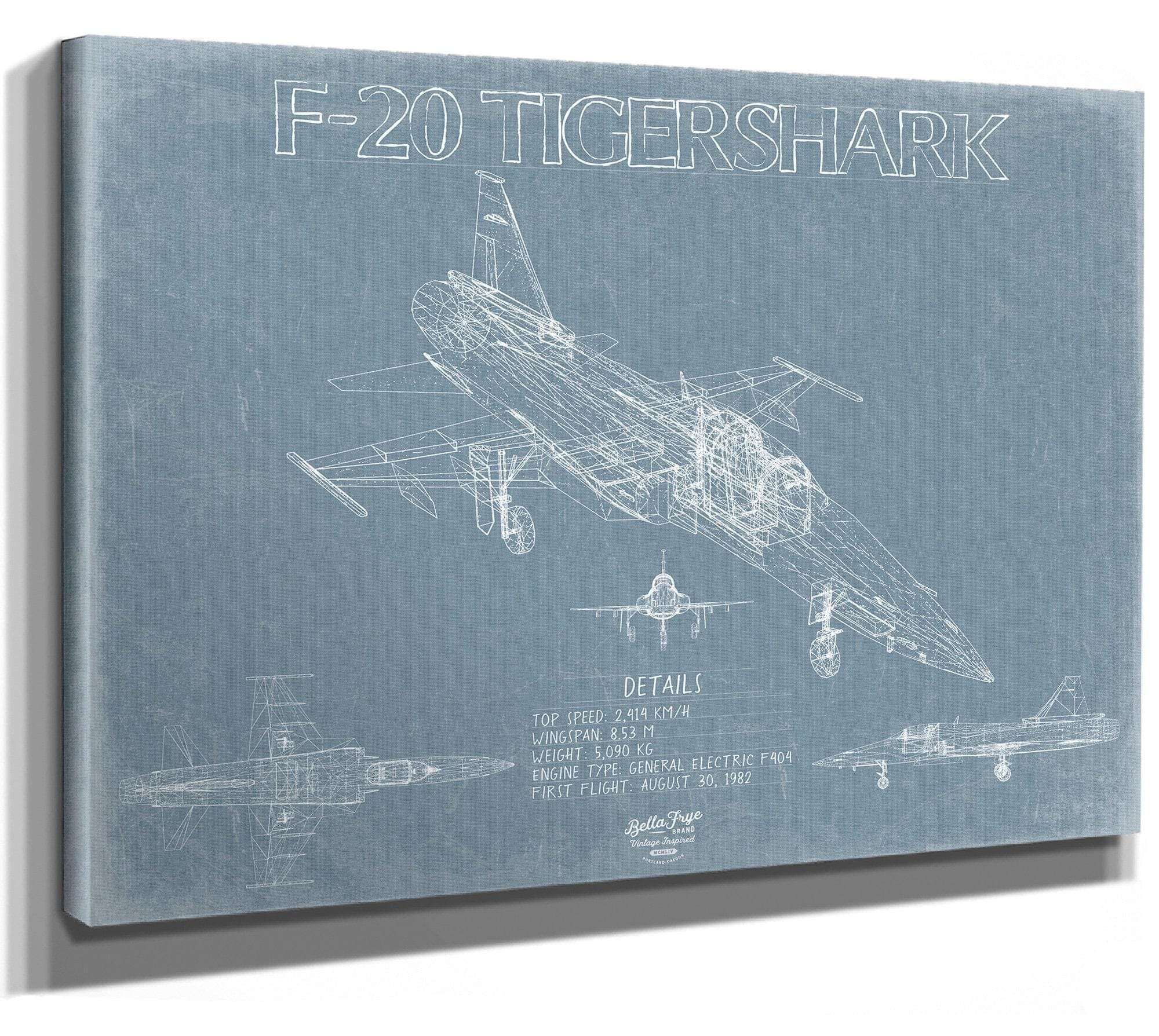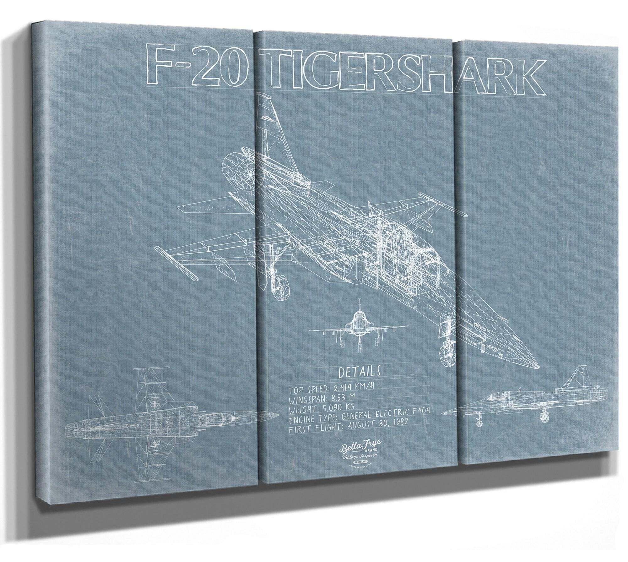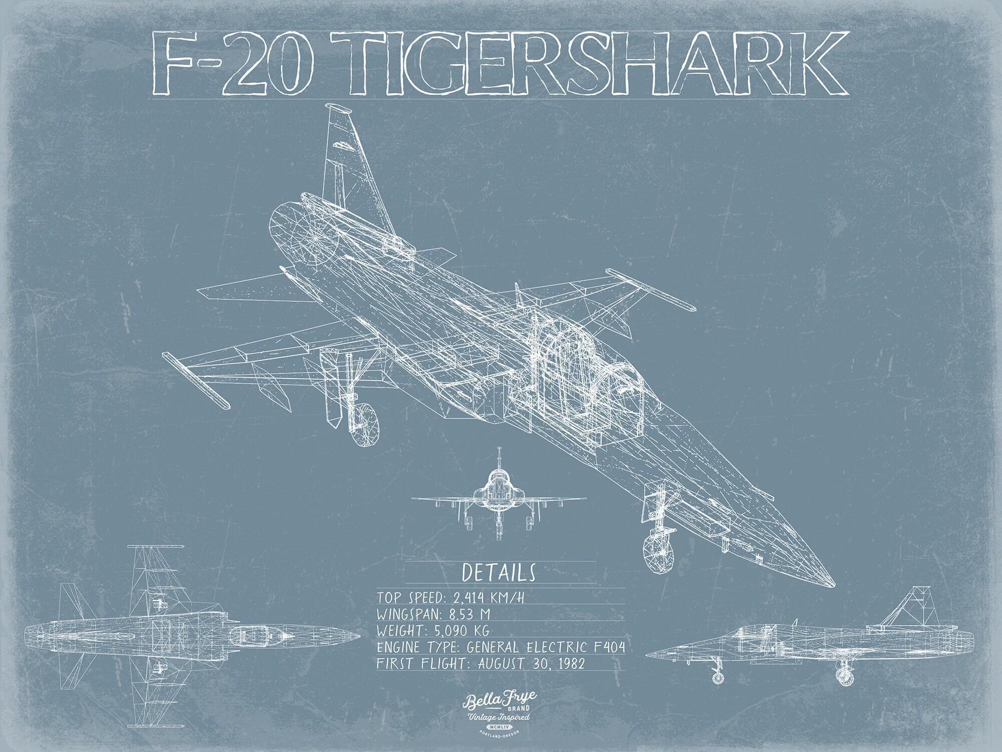 • Bella Frye Home & Garden > Decor > Artwork Northrop F-20 Tigershark Aircraft Blueprint Wall Art - Original Fighter Plane Print