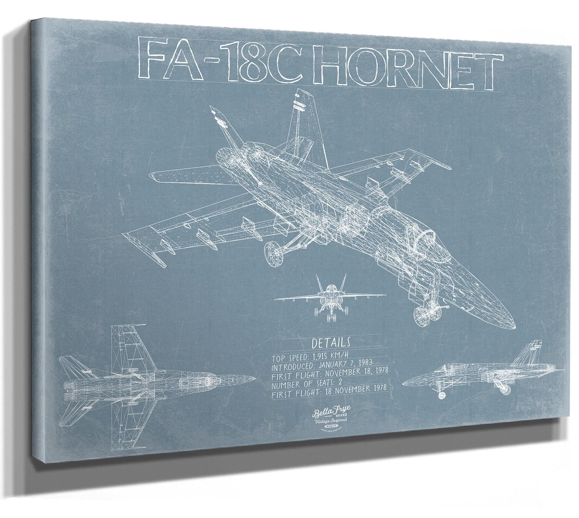 • Bella Frye Home & Garden > Decor > Artwork FA-18C Hornet Aircraft Blueprint Wall Art - Original Aviation Plane Print