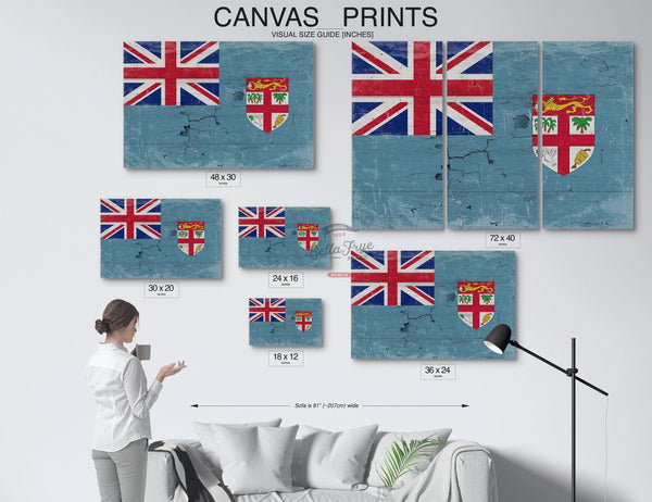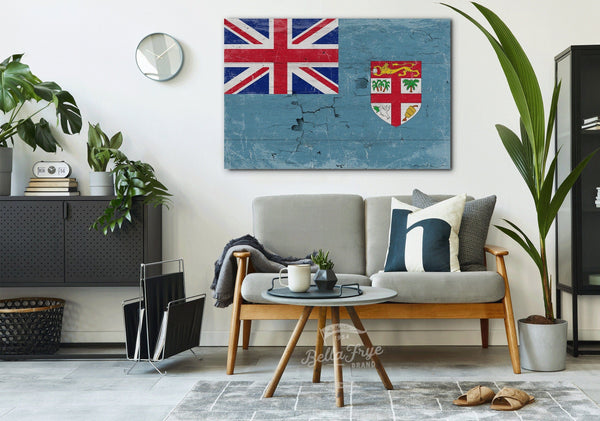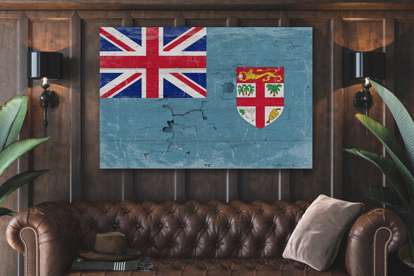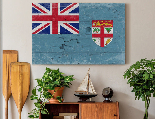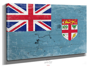 • Bella Frye Home & Garden > Decor > Artwork Fiji Flag Wall Art - Vintage Fiji Flag Sign Weathered Wood Style on Canvas