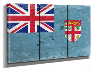• Bella Frye Home & Garden > Decor > Artwork 60" x 40" / 3 Panel Canvas Wrap Fiji Flag Wall Art - Vintage Fiji Flag Sign Weathered Wood Style on Canvas