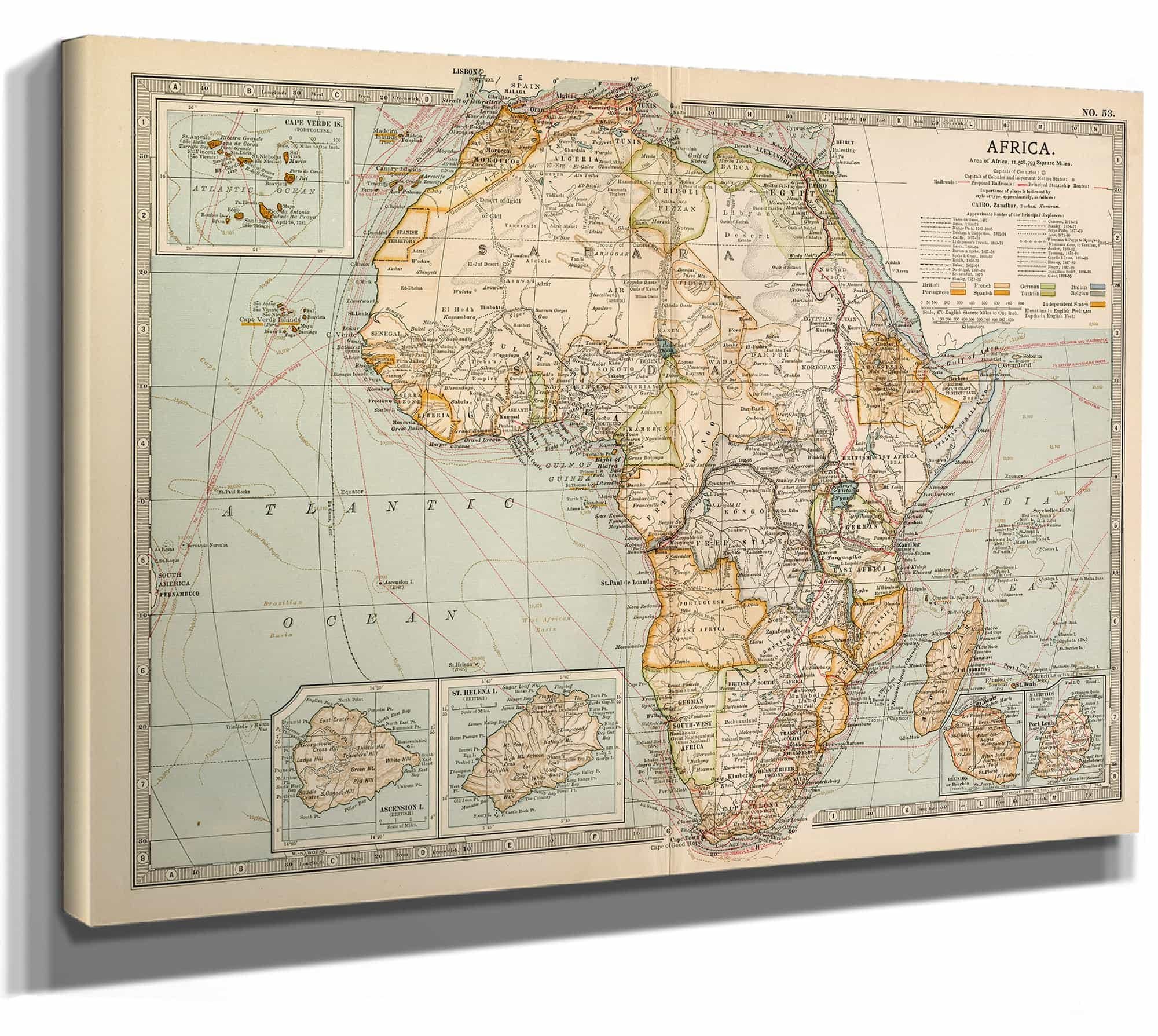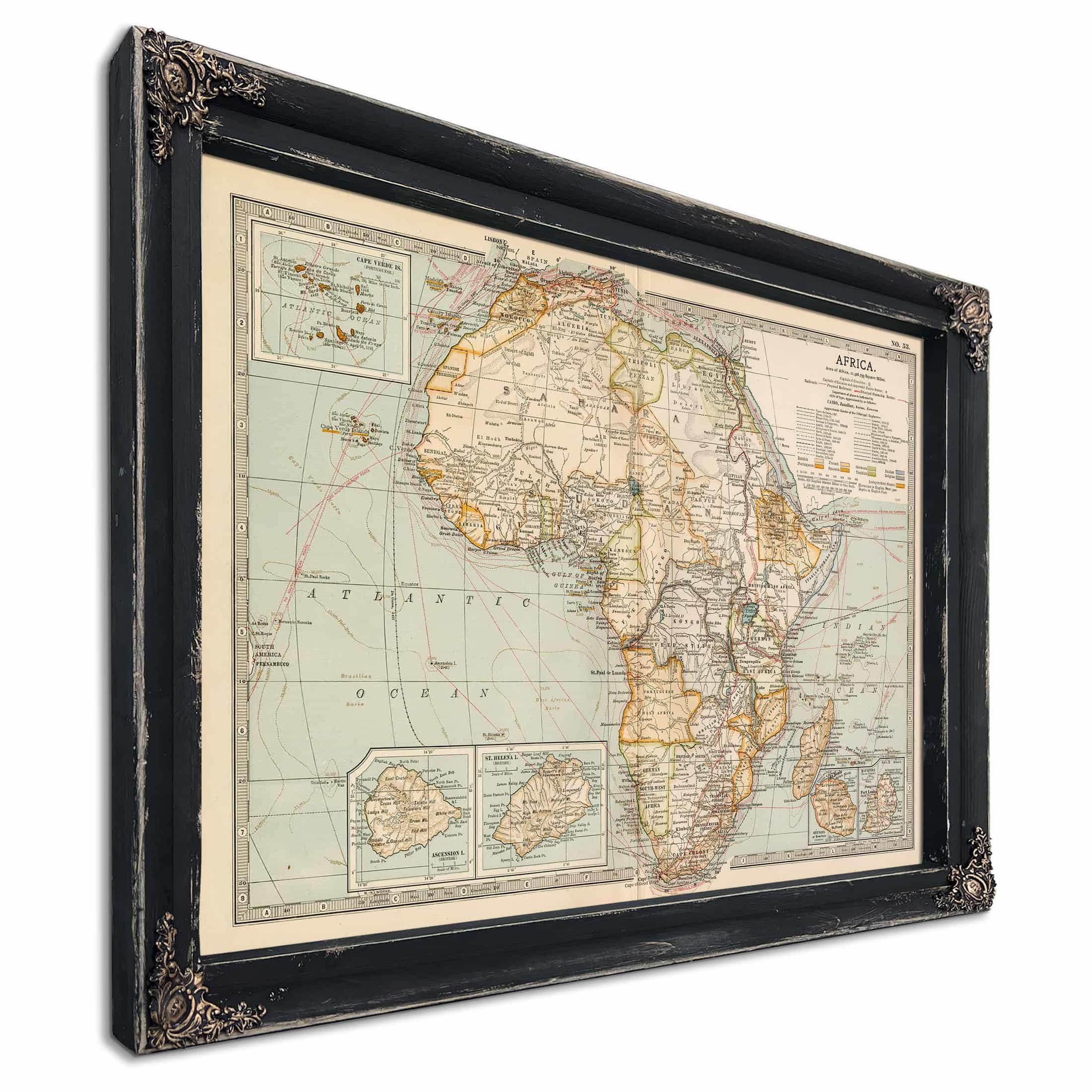 Framed Africa Vintage Map - Ornate Embellishment Frame with Print