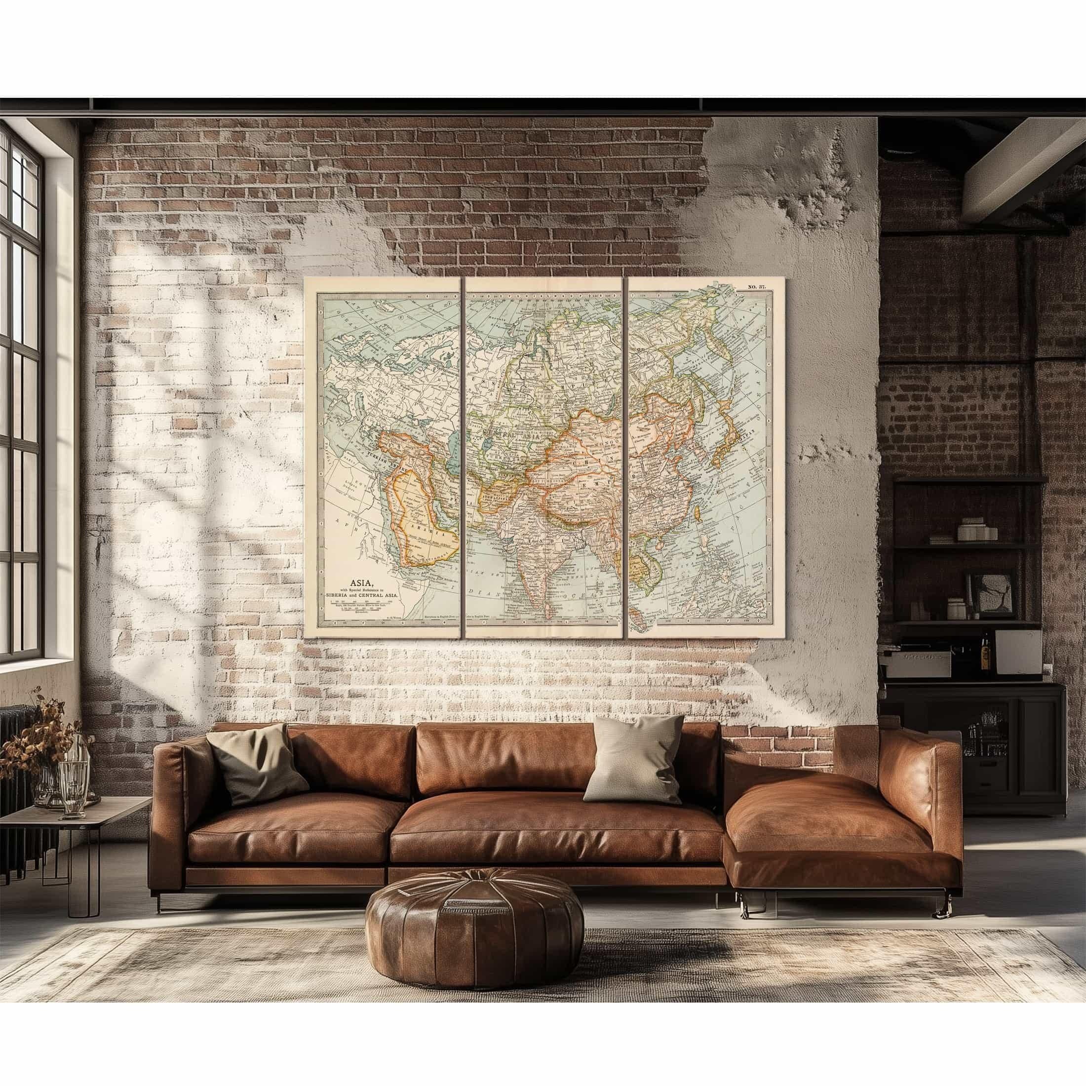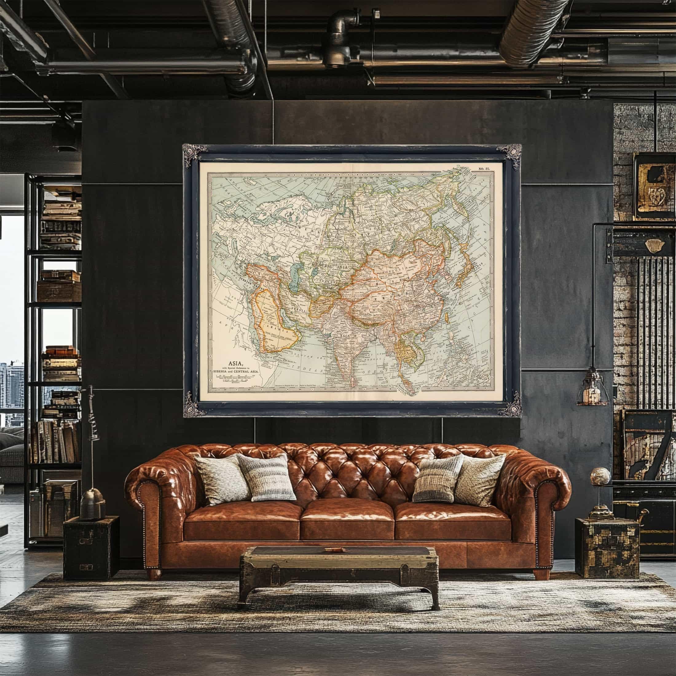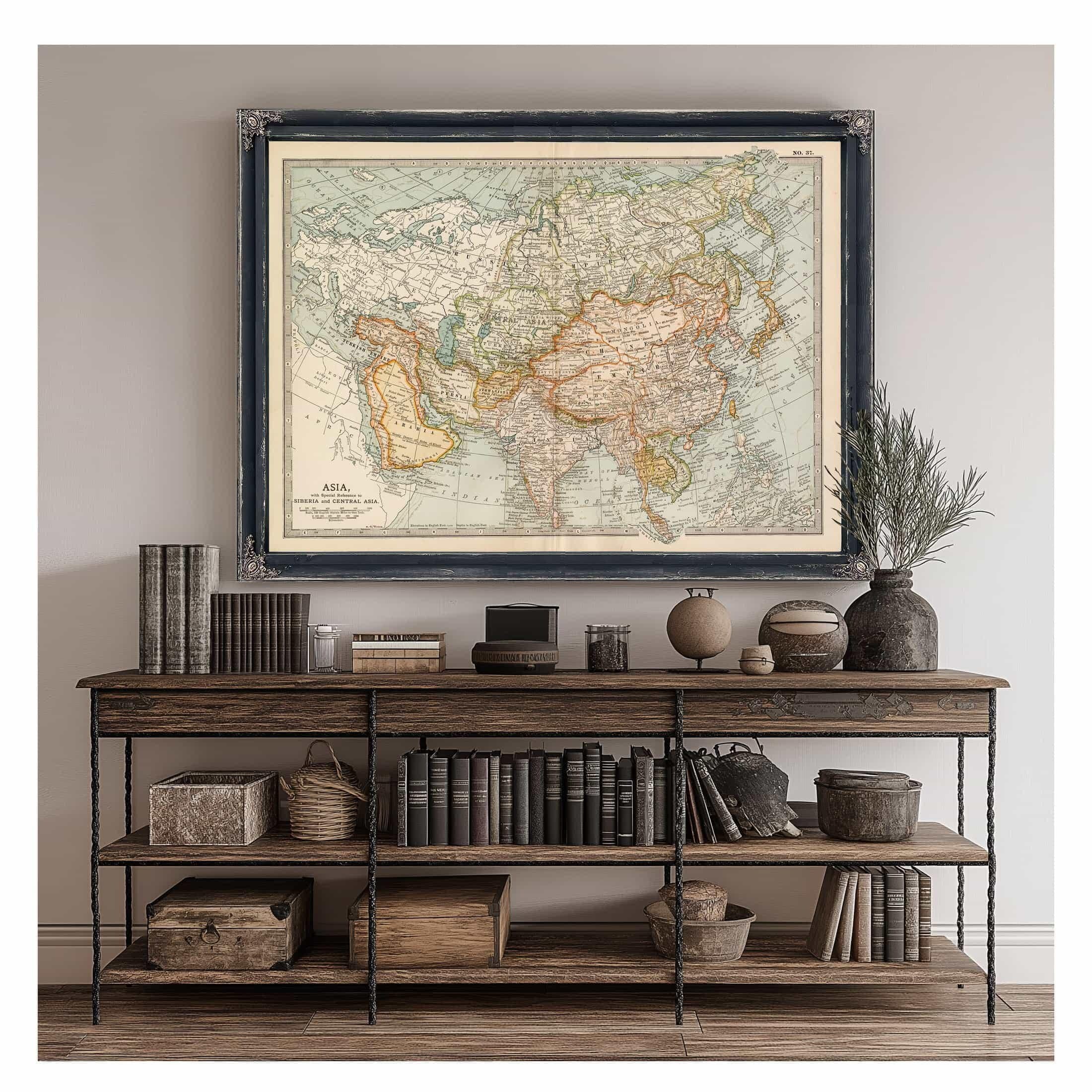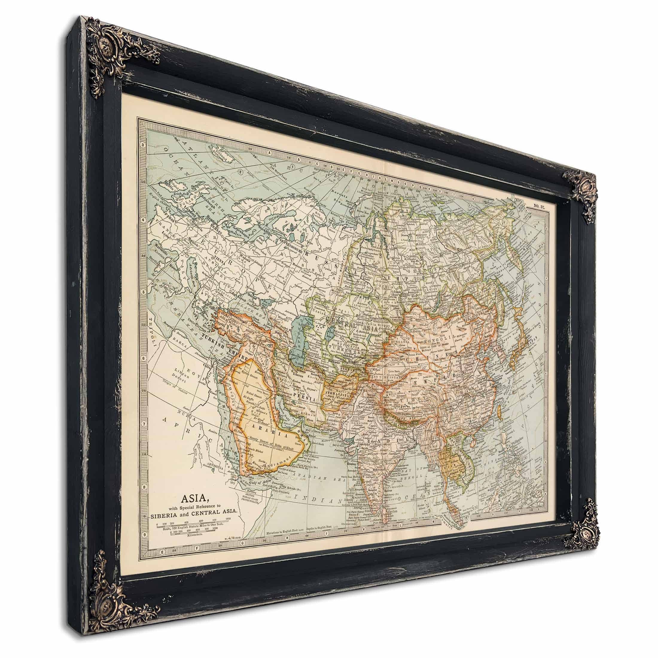 Framed Asia Vintage Map - Ornate Embellishment Frame with Print