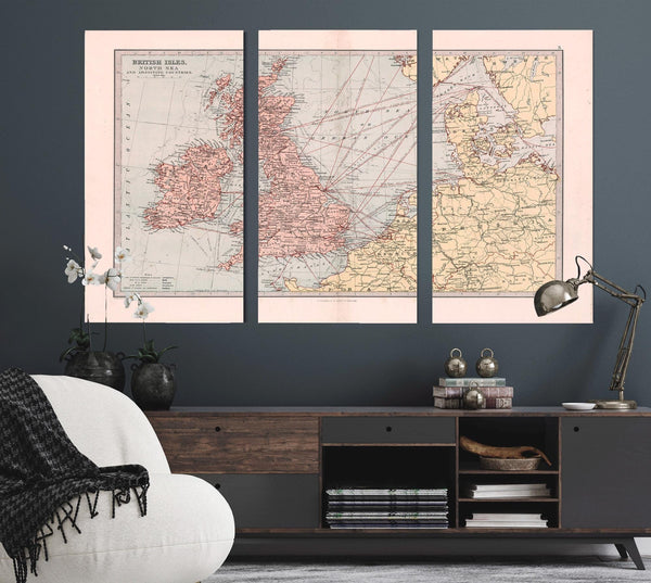• Bella Frye Home & Garden > Decor > Artwork Framed British Isles, North Sea, and adjoining countries Vintage Map - Ornate Embellishment Frame with Print