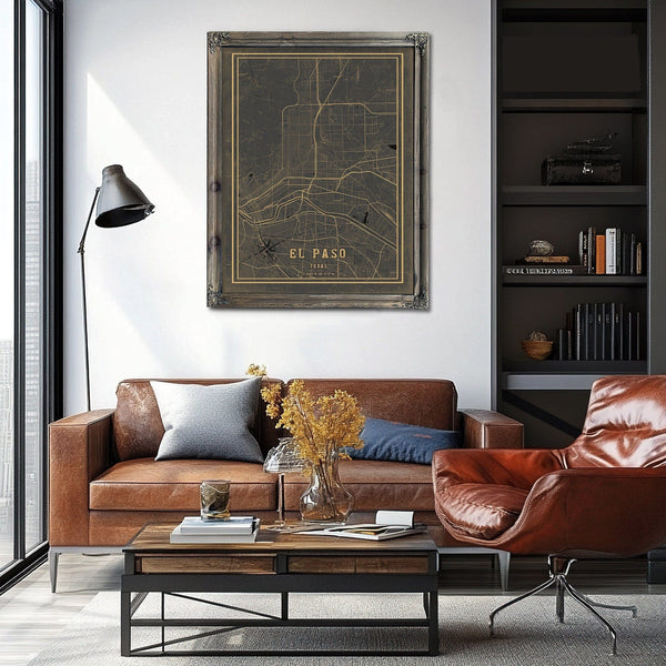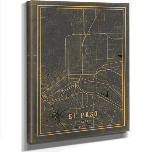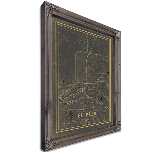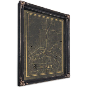 • Bella Frye Home & Garden > Decor > Artwork 11 x 14 / Stretched Canvas Wrap Framed El Paso Vintage Map - Ornate Embellishment Frame with Print