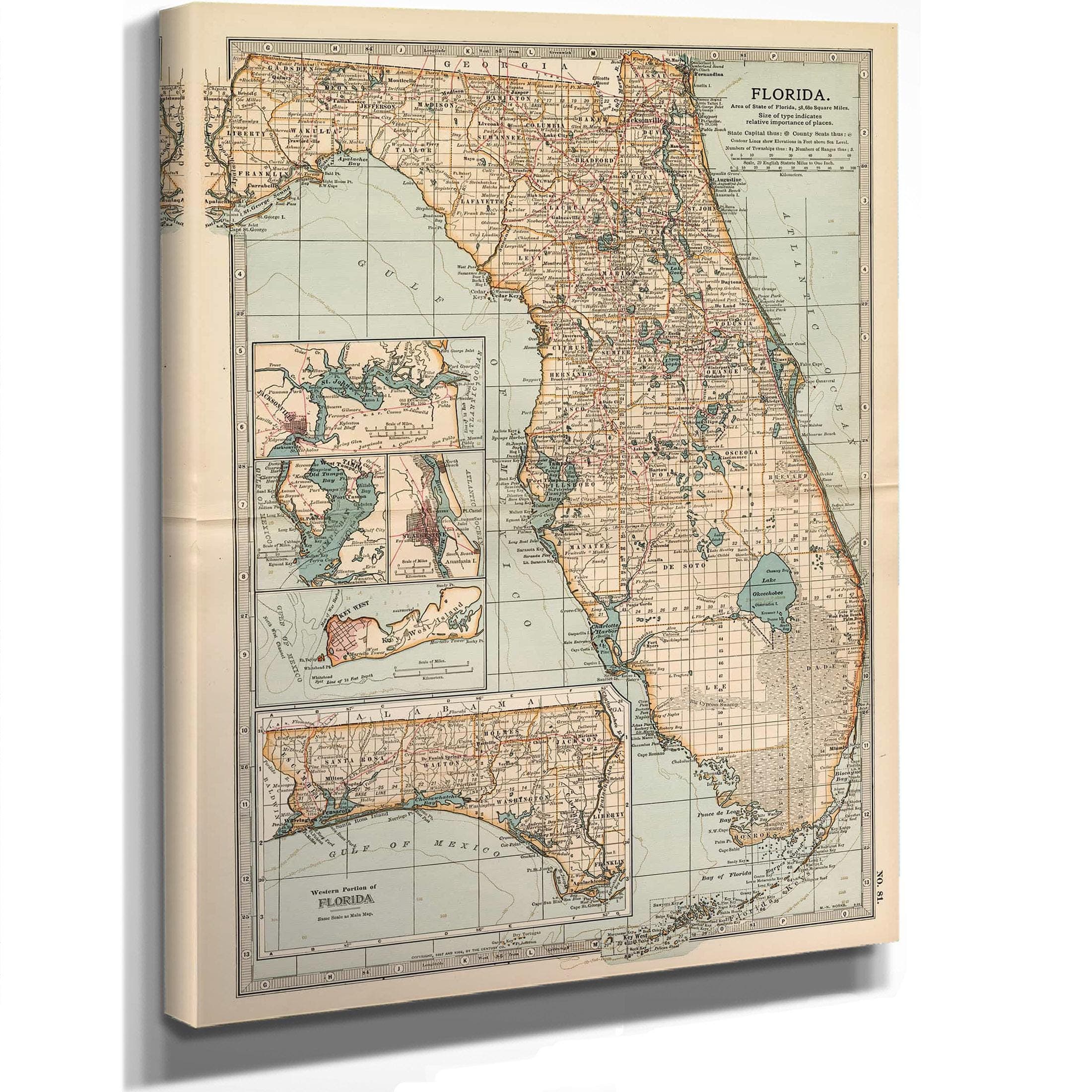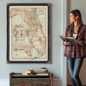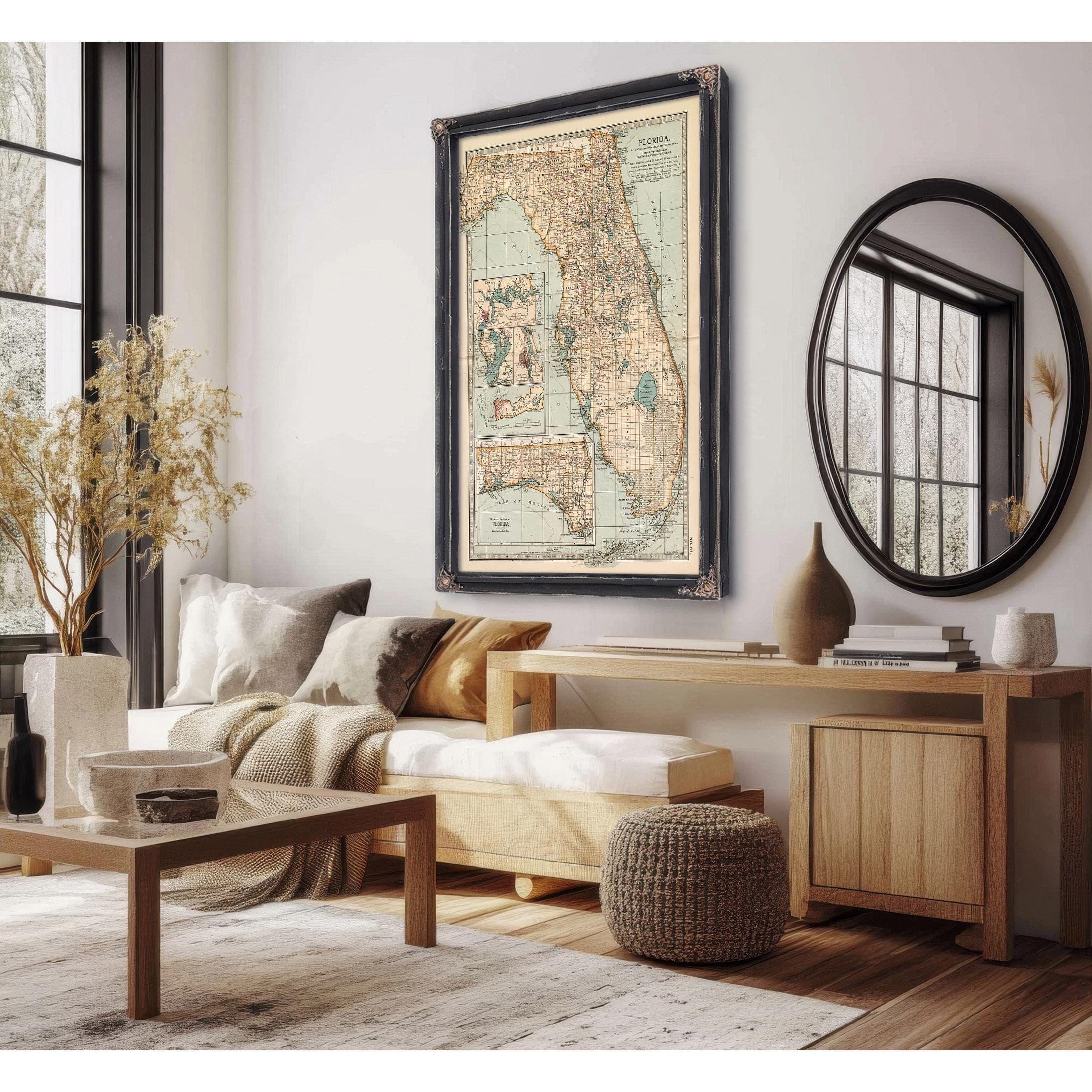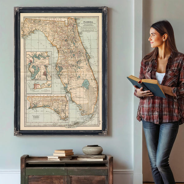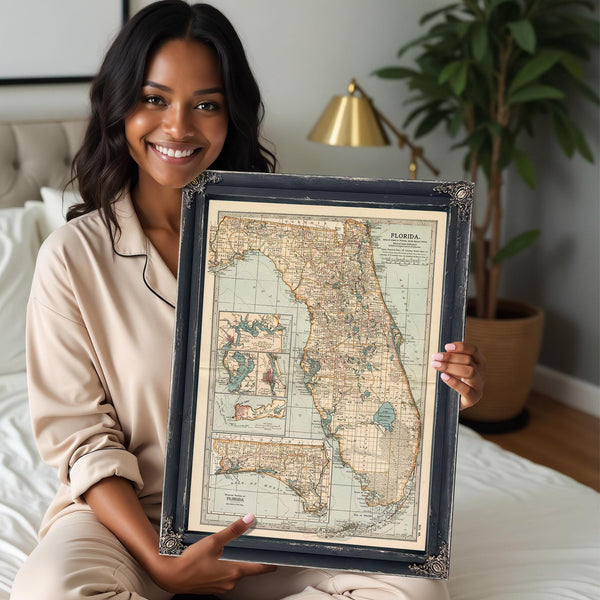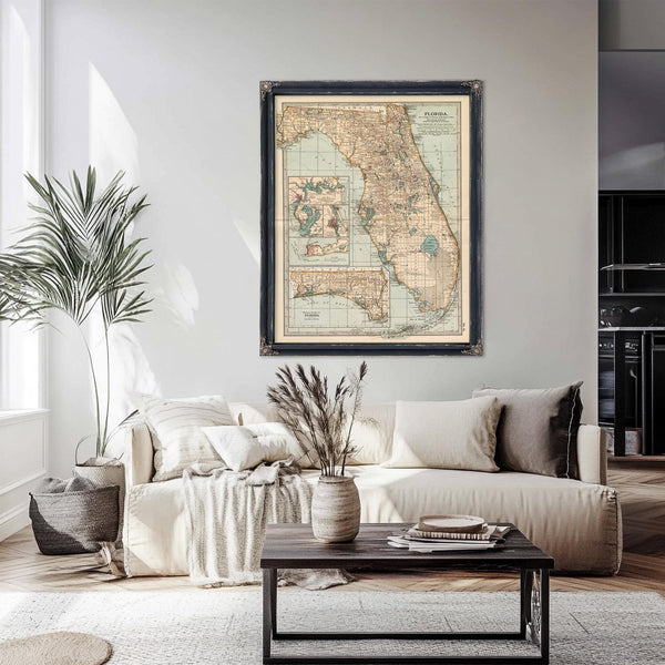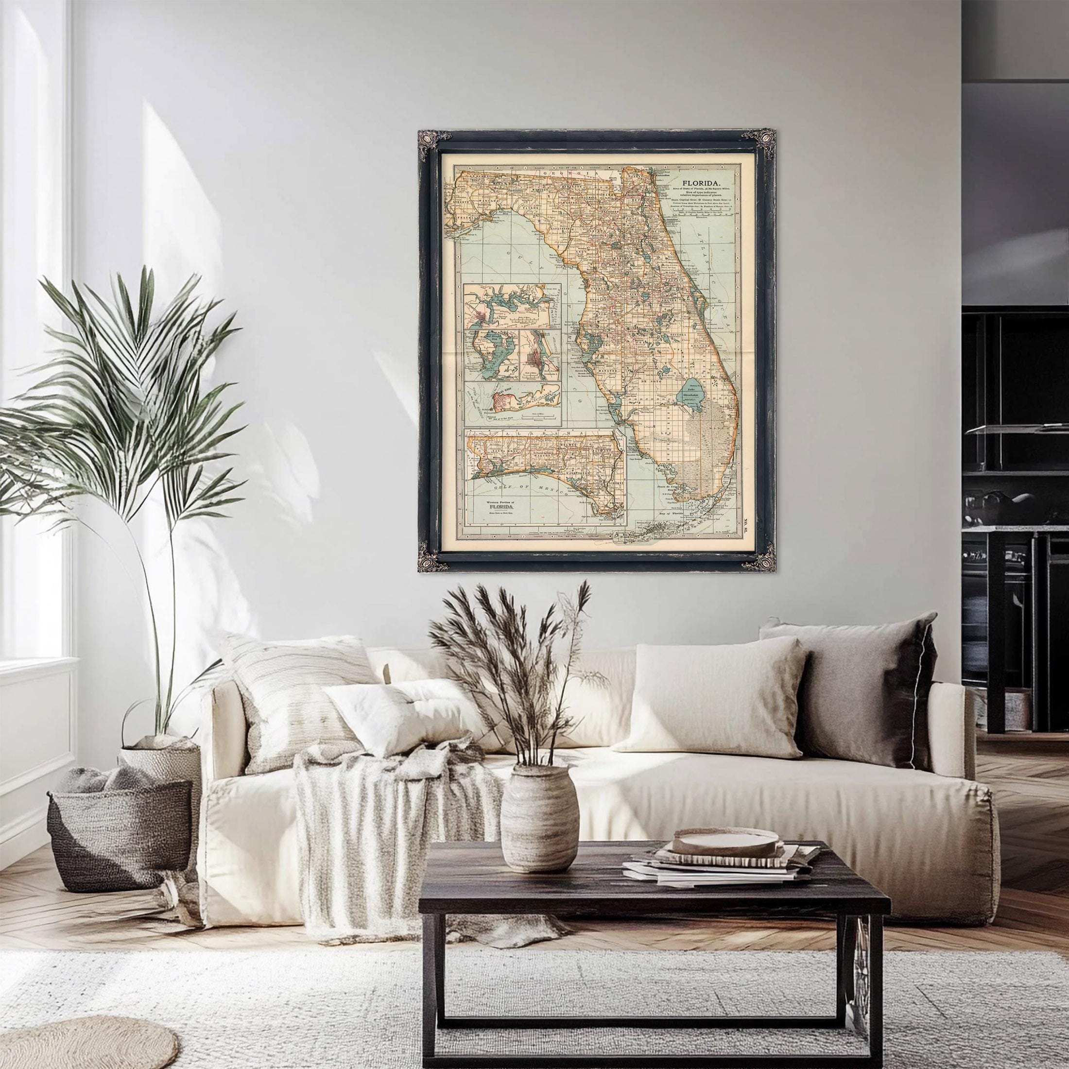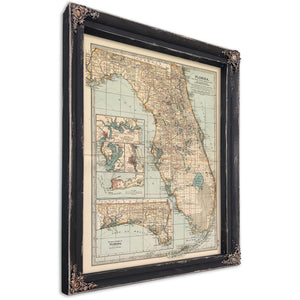 Framed Florida Vintage Map - Ornate Embellishment Frame with Print