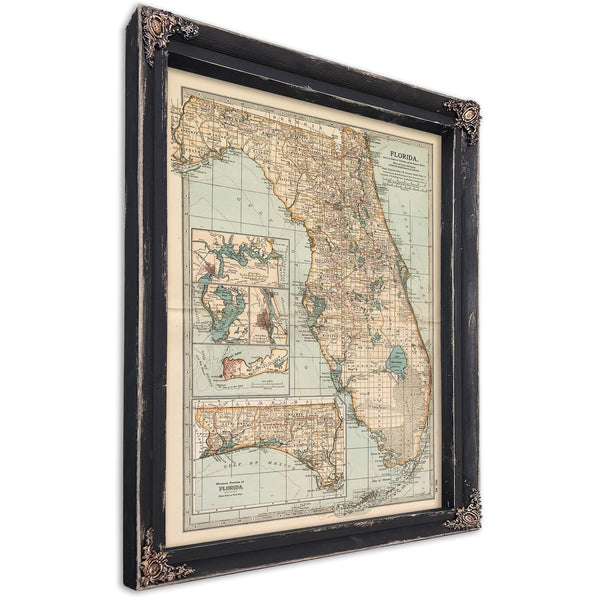 • Bella Frye Home & Garden > Decor > Artwork Framed Florida Vintage Map - Ornate Embellishment Frame with Print