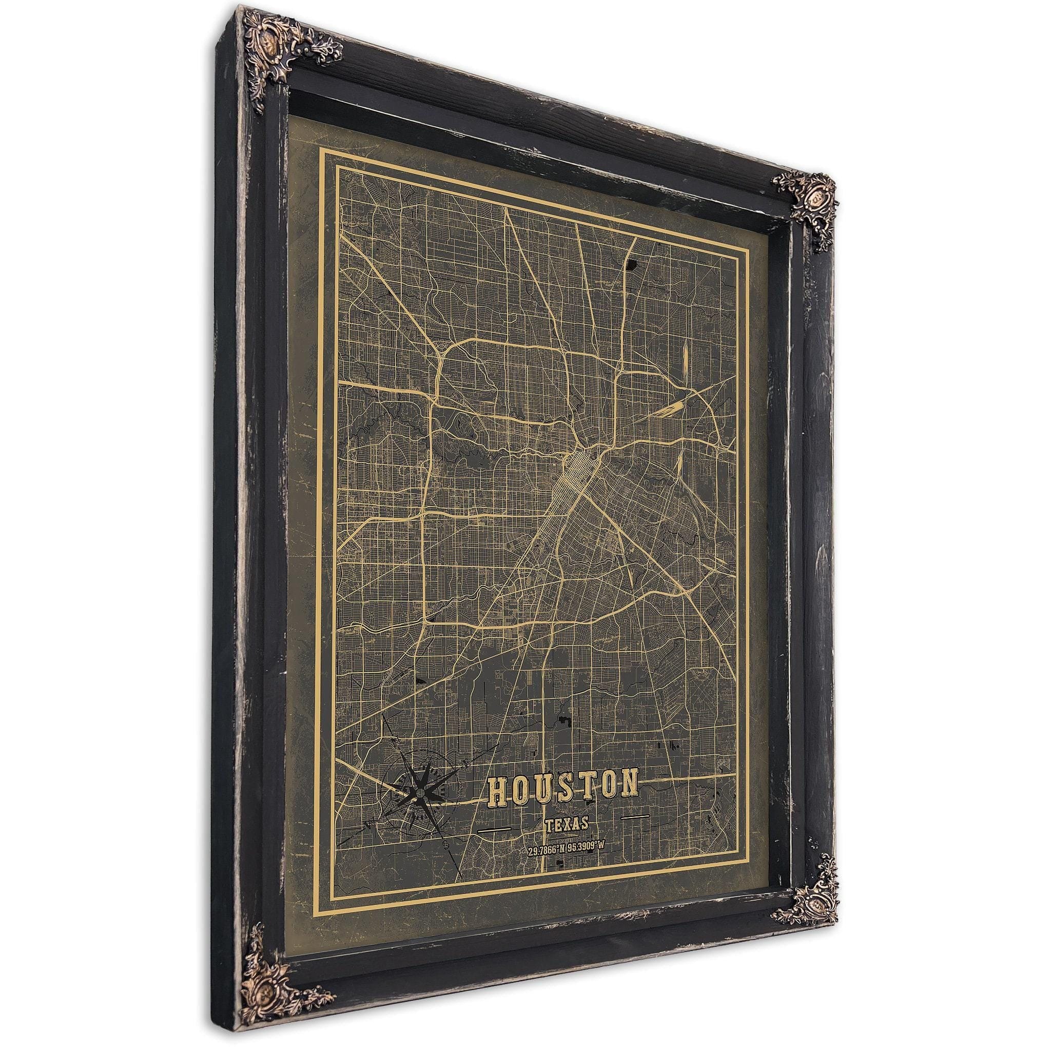• Bella Frye Home & Garden > Decor > Artwork Framed Houston Vintage Map - Ornate Embellishment Frame with Print
