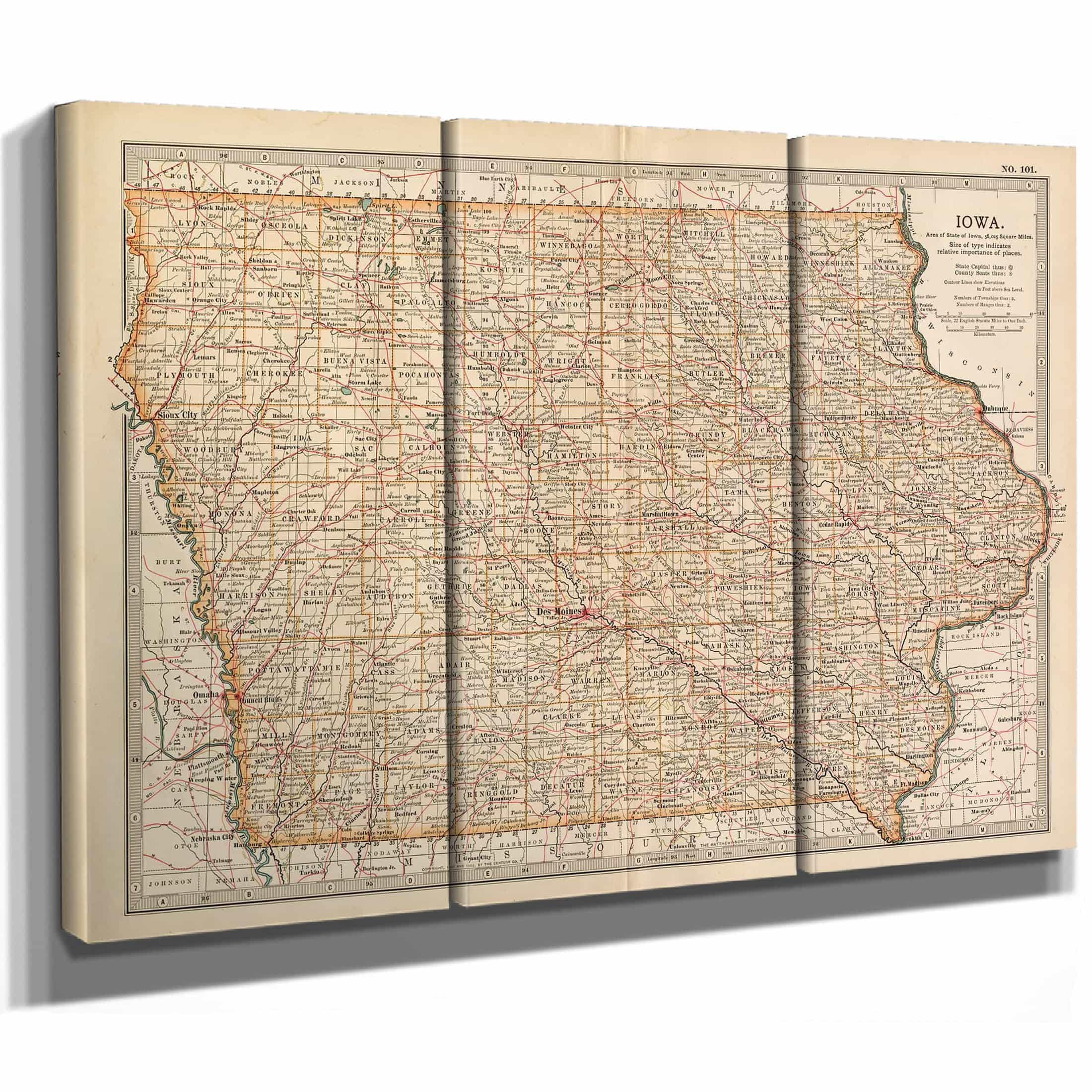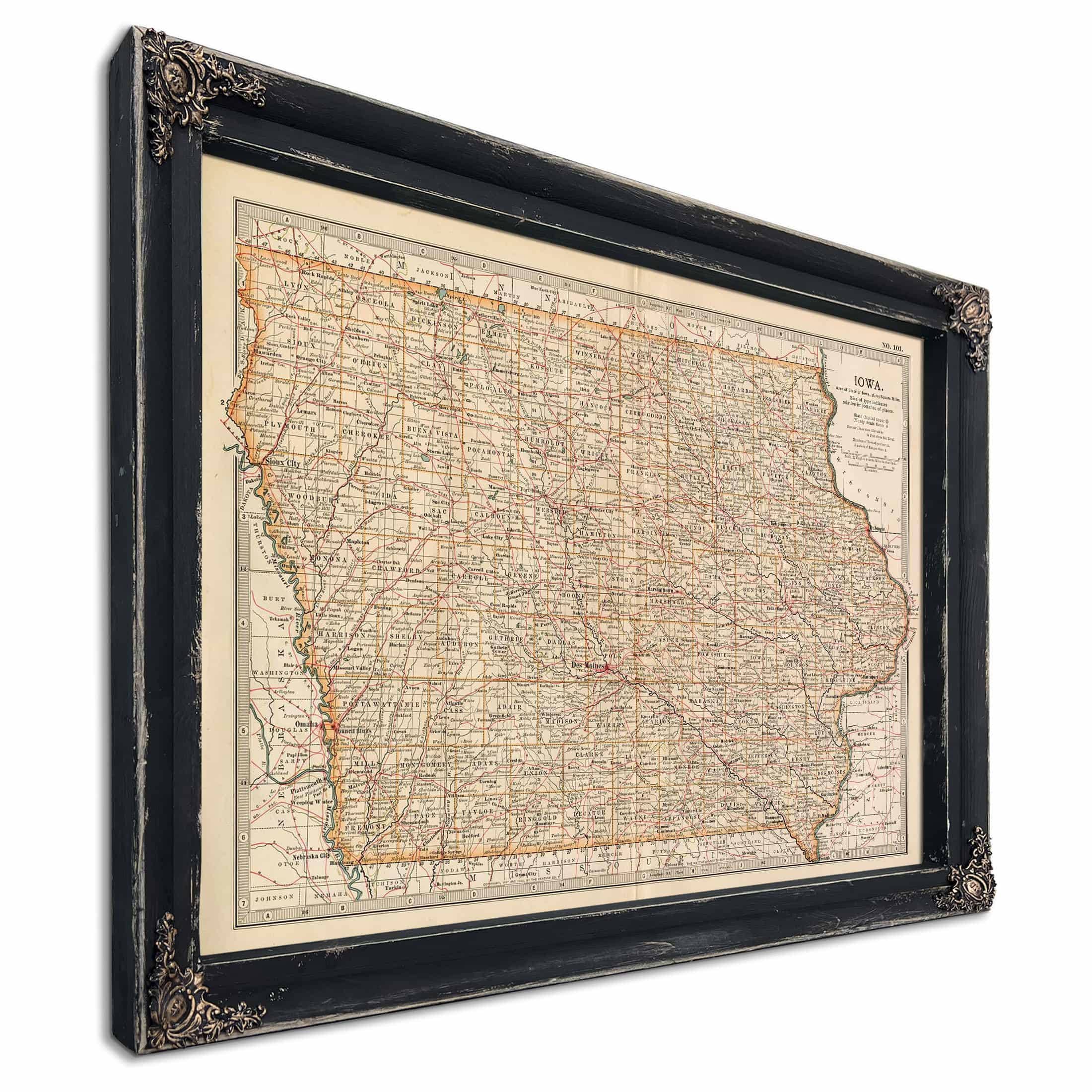 • Bella Frye Home & Garden > Decor > Artwork Framed Iowa Vintage Map - Ornate Embellishment Frame with Print