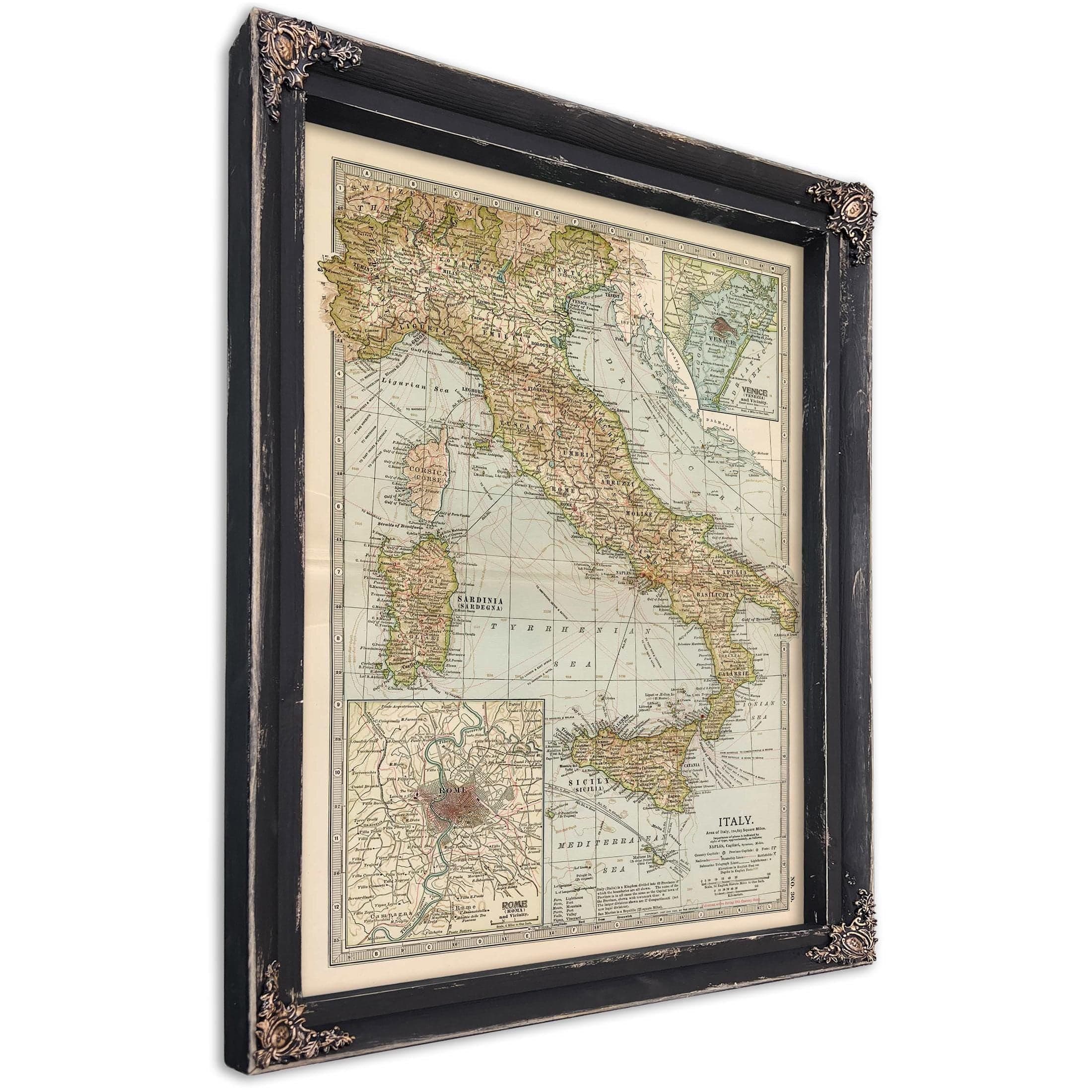 • Bella Frye Home & Garden > Decor > Artwork Framed Italy Vintage Map - Ornate Embellishment Frame with Print