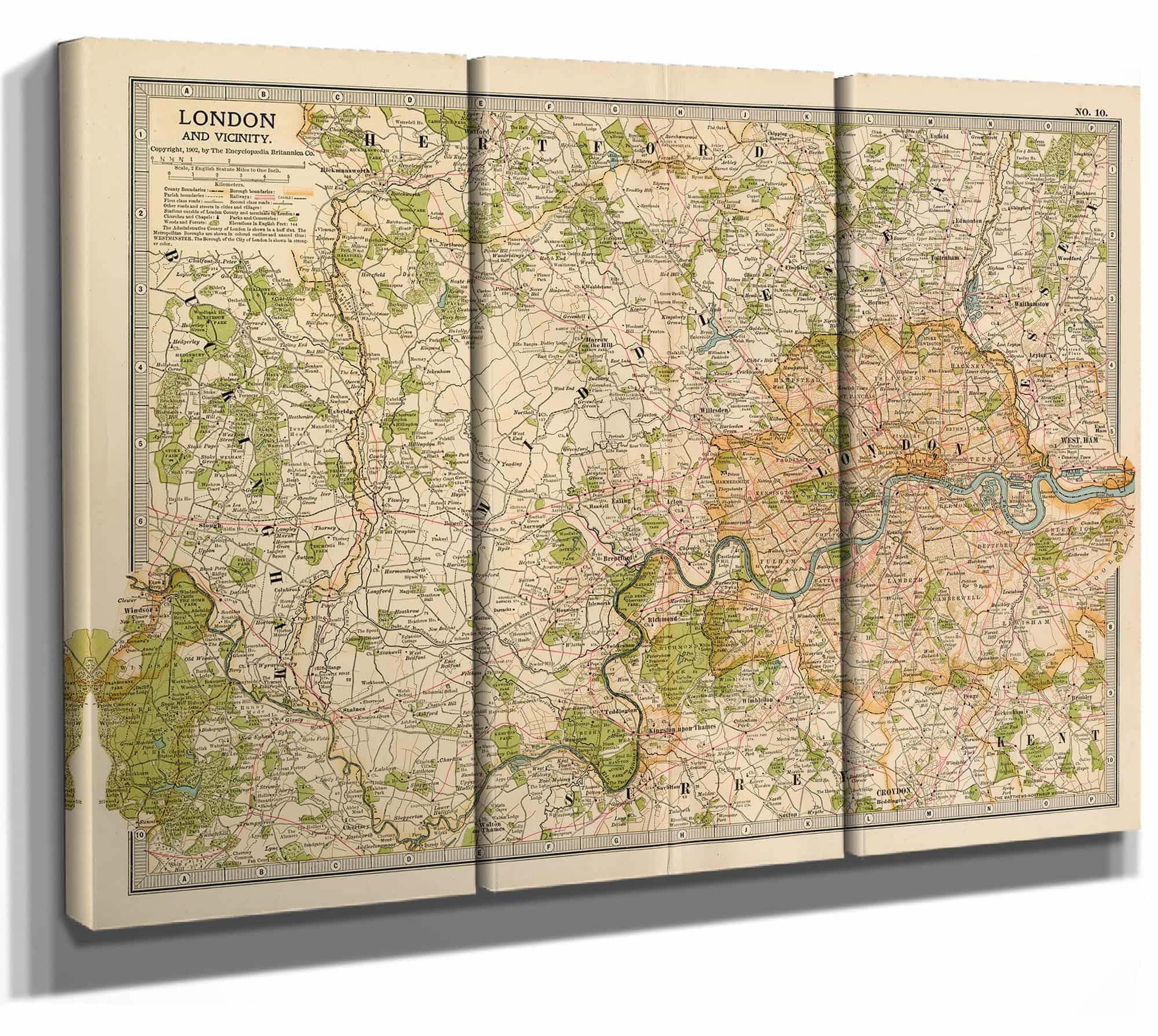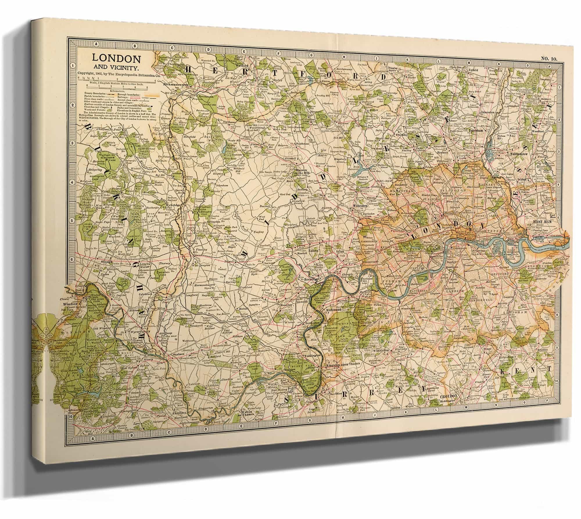 Framed London Vintage Map - Ornate Embellishment Frame with Print
