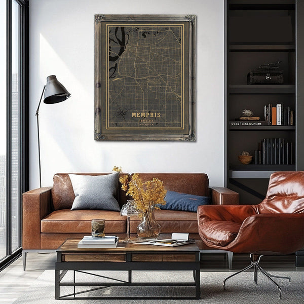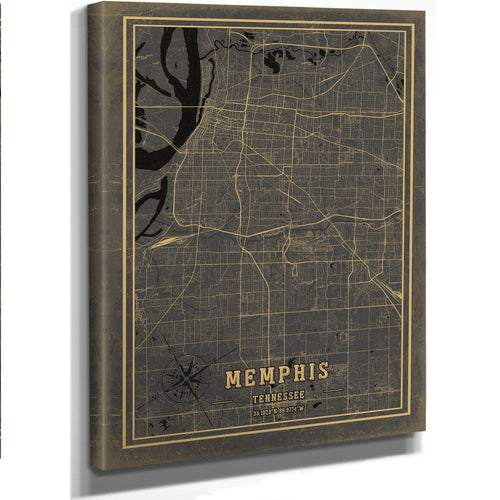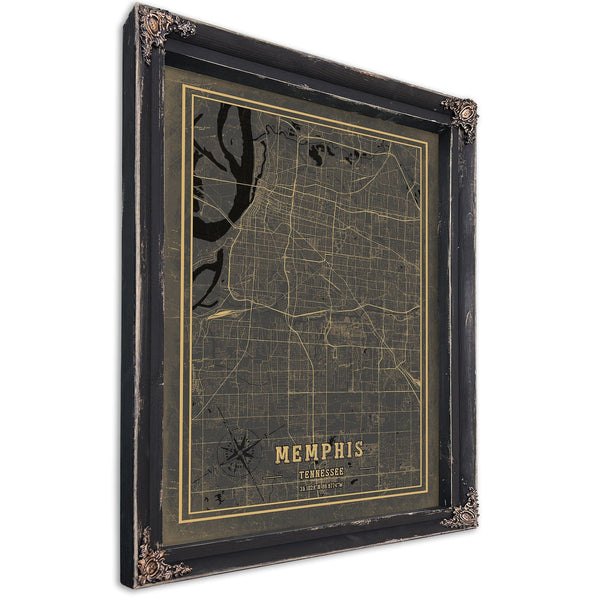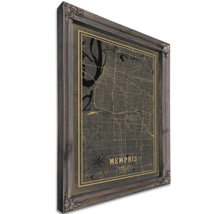 • Bella Frye Home & Garden > Decor > Artwork 11 x 14 / Stretched Canvas Wrap Framed Memphis Vintage Map - Ornate Embellishment Frame with Print