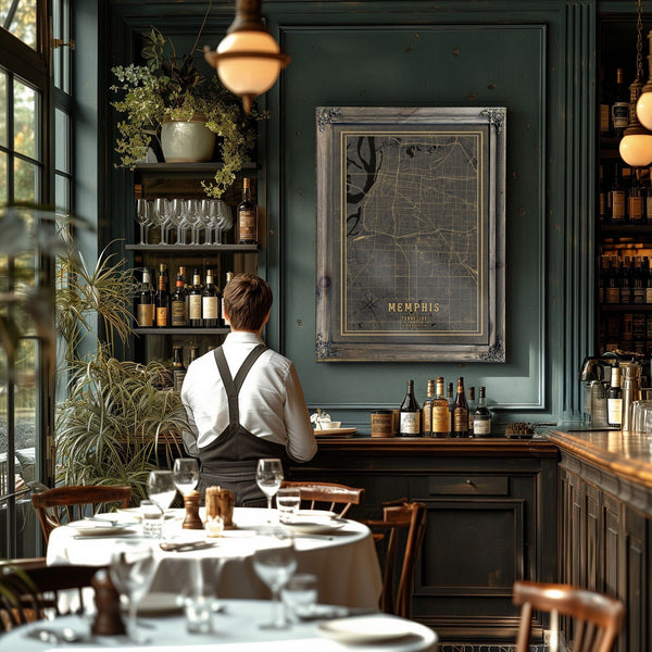 • Framed Memphis Vintage Map - Ornate Embellishment Frame with Print