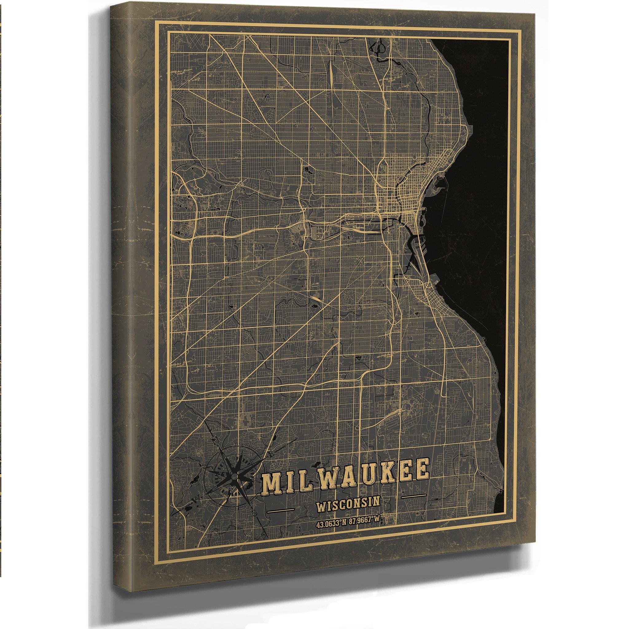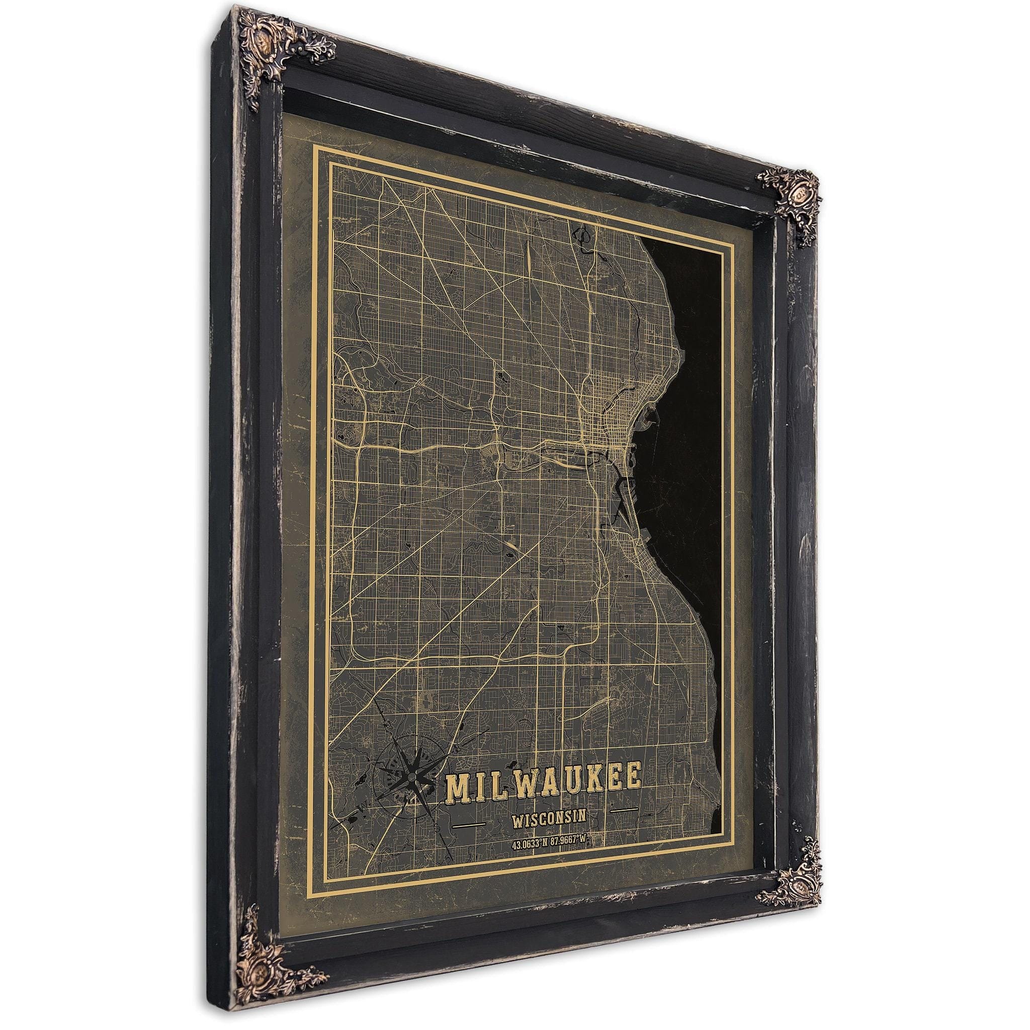 • Bella Frye Home & Garden > Decor > Artwork Framed Milwaukee Vintage Map - Ornate Embellishment Frame with Print