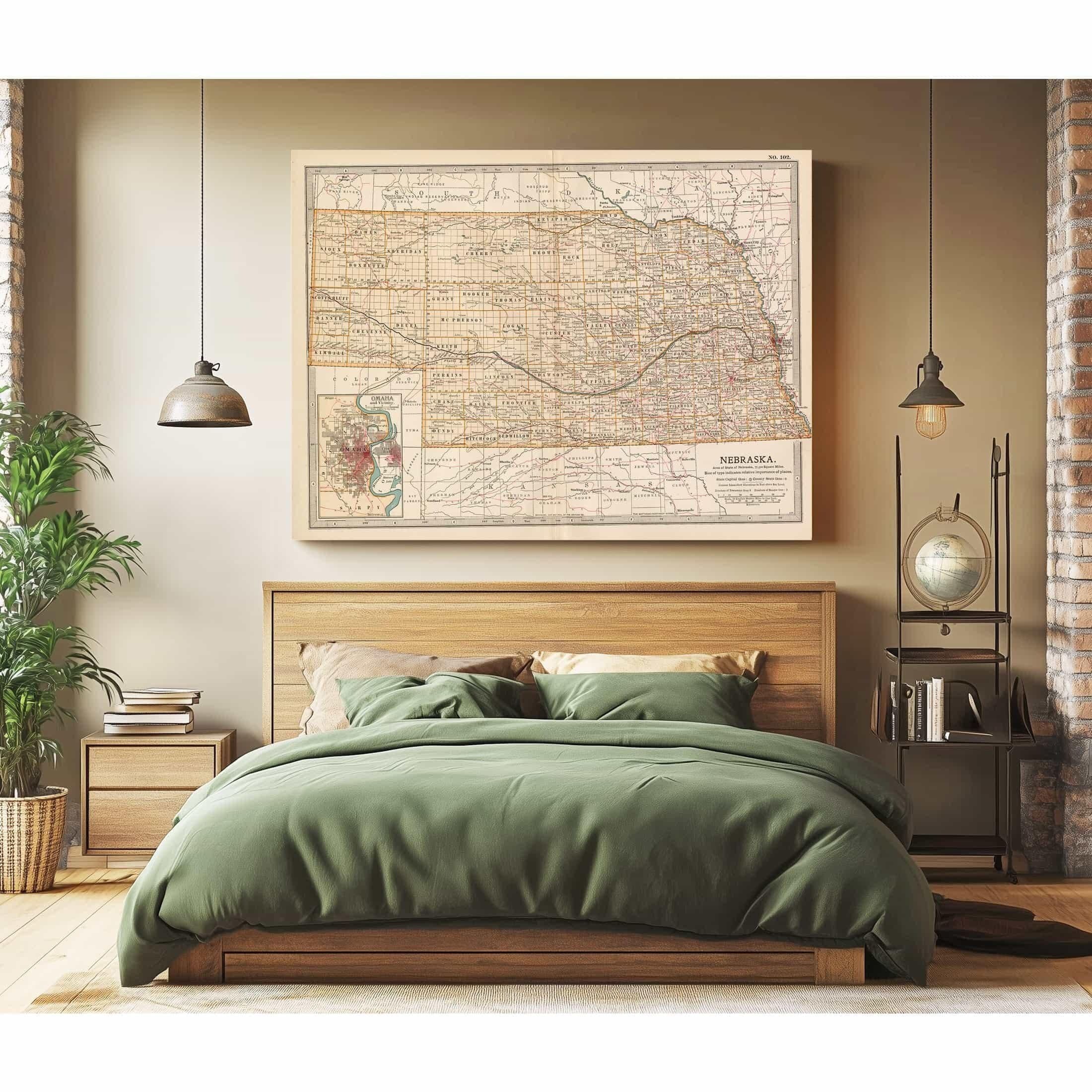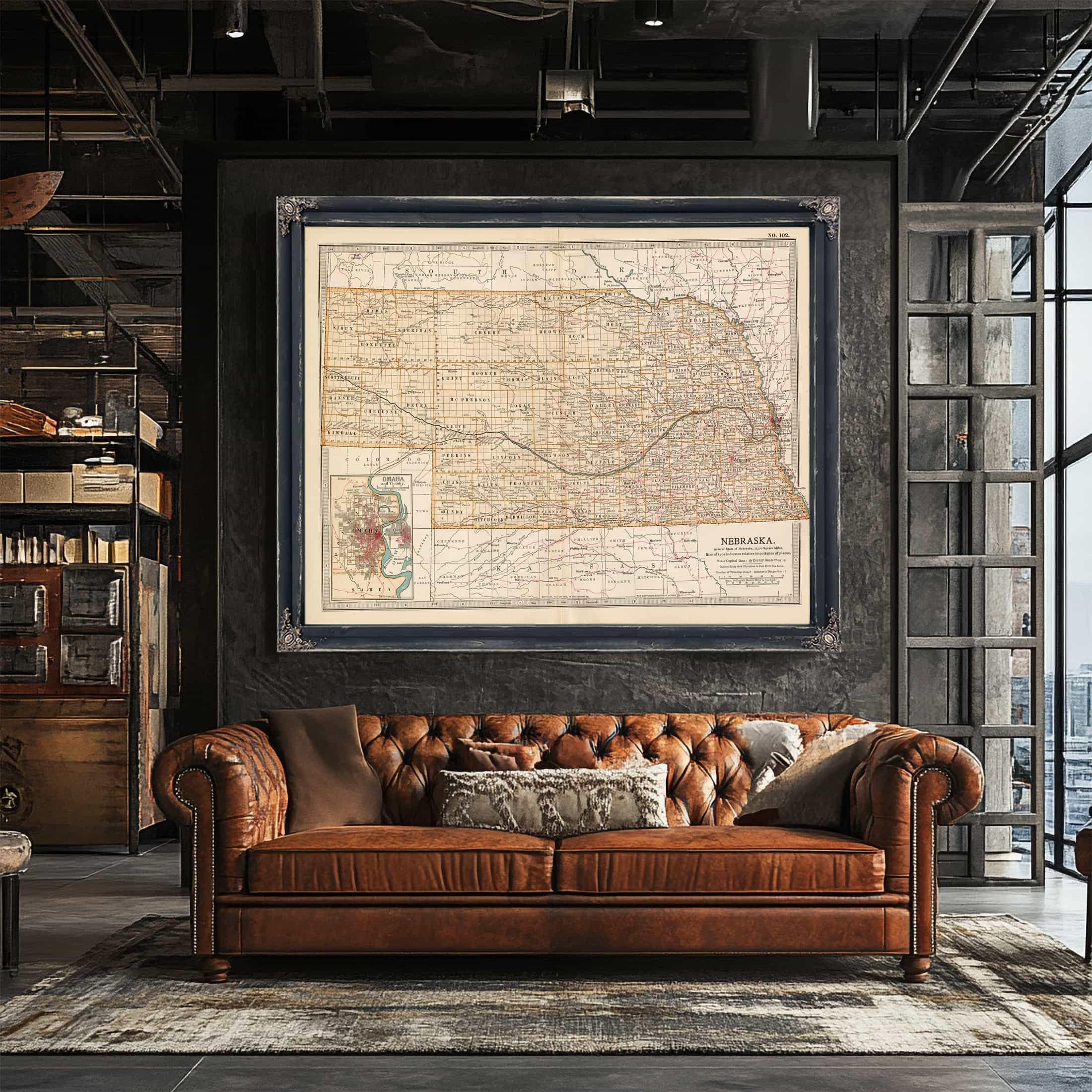 • Bella Frye Home & Garden > Decor > Artwork Framed Nebraska Vintage Map - Ornate Embellishment Frame with Print