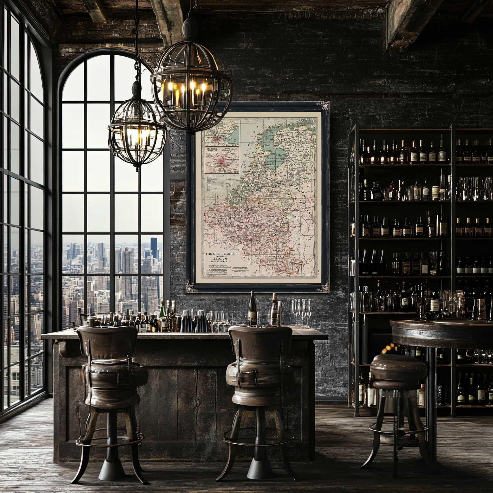 • Bella Frye Home & Garden > Decor > Artwork Framed Netherlands Vintage Map - Ornate Embellishment Frame with Print