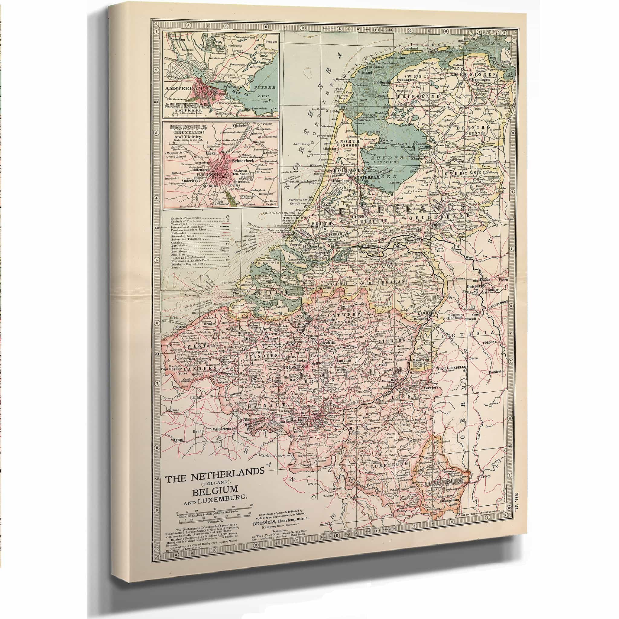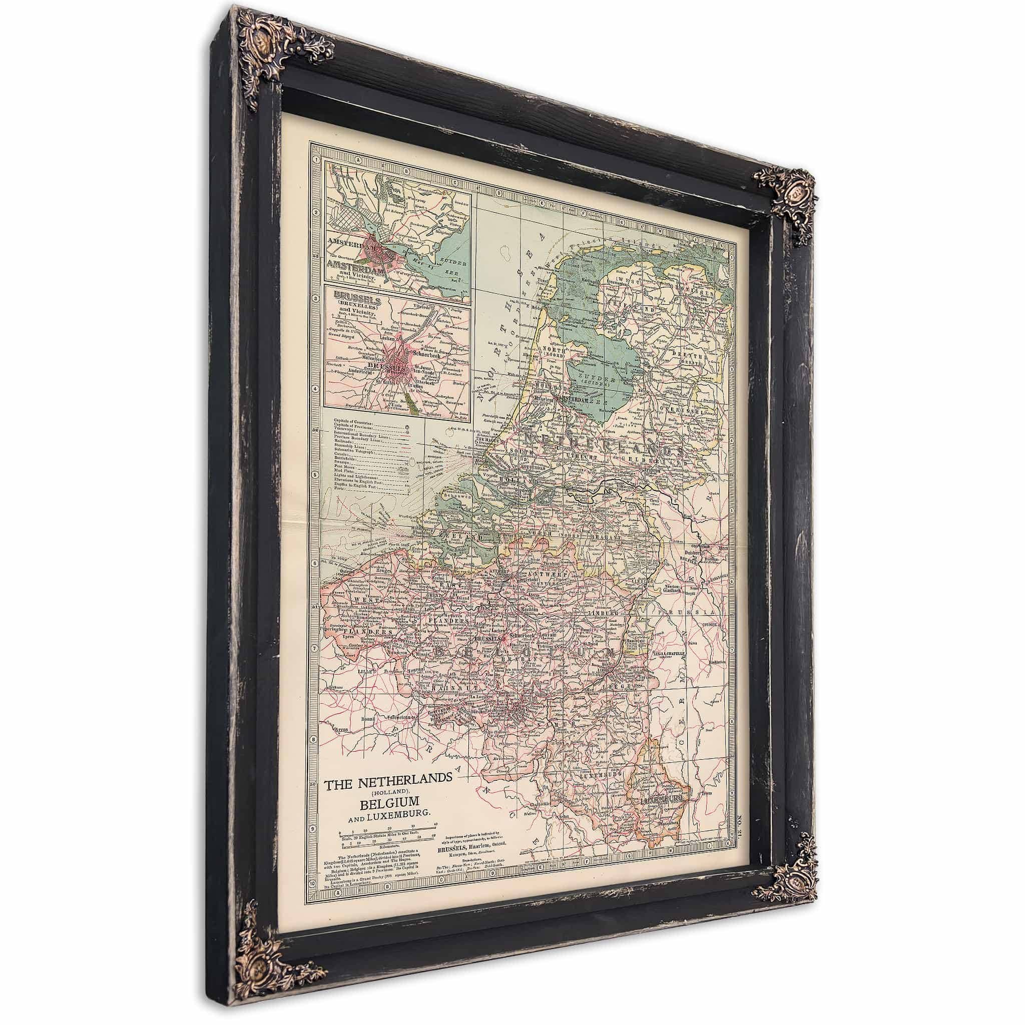 Framed Netherlands Vintage Map - Ornate Embellishment Frame with Print