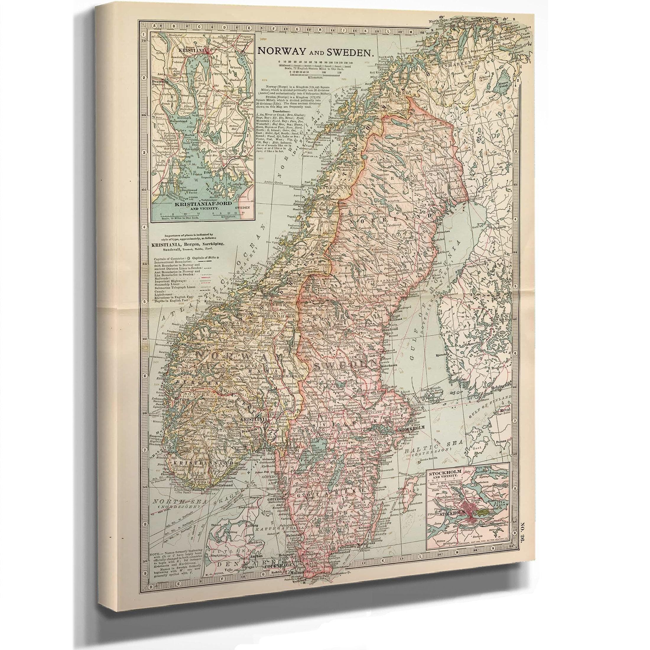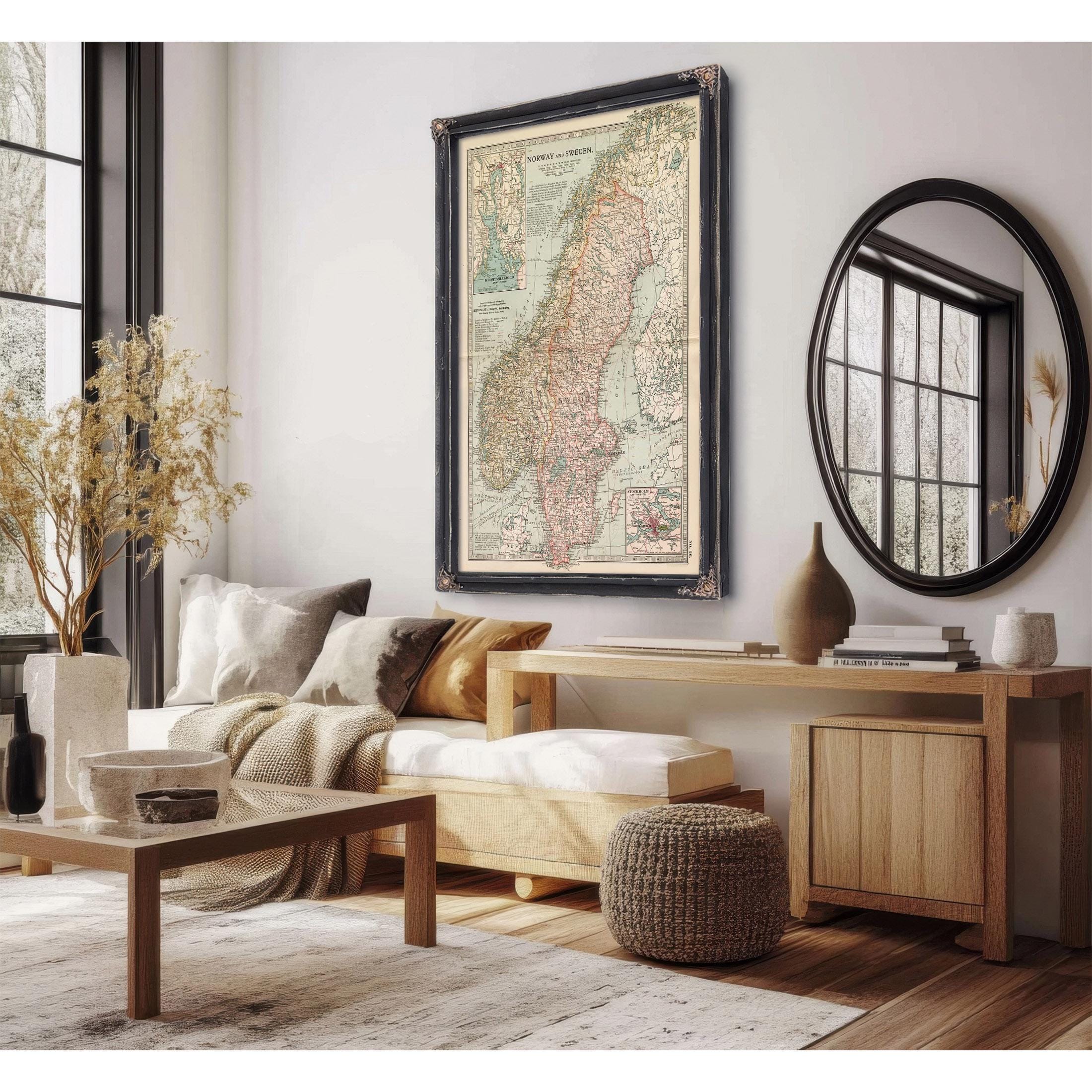 Framed Norway Sweden Vintage Map - Ornate Embellishment Frame with Print