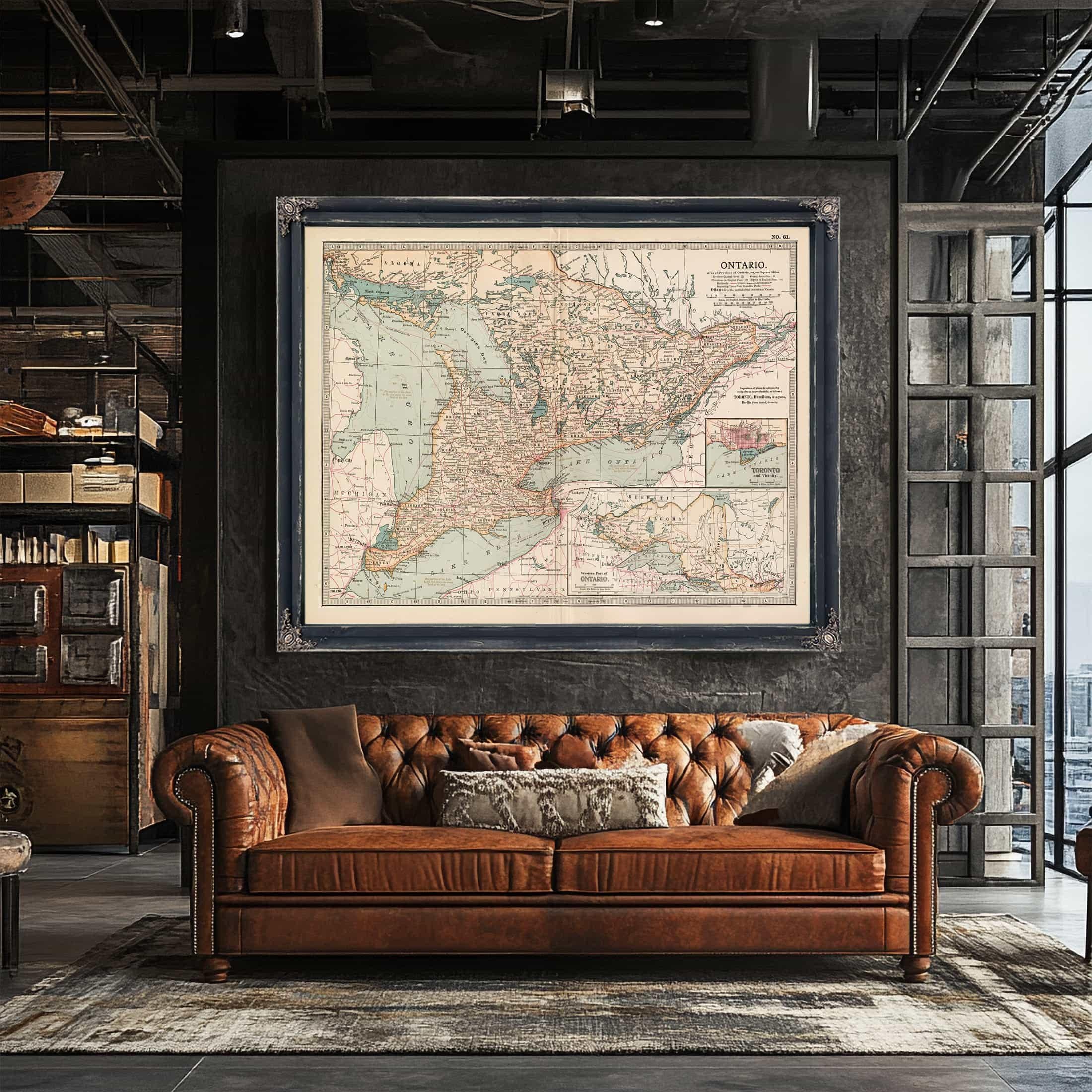 Framed Ontario Vintage Map - Ornate Embellishment Frame with Print