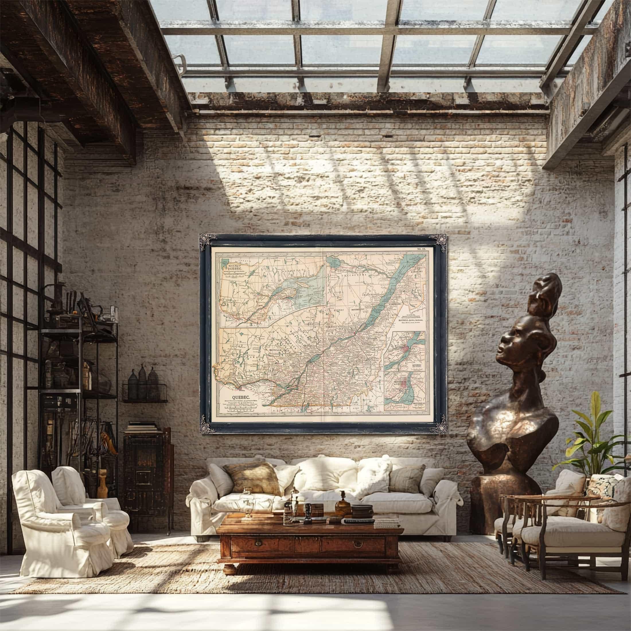 • Bella Frye Home & Garden > Decor > Artwork Framed Quebec Vintage Map - Ornate Embellishment Frame with Print