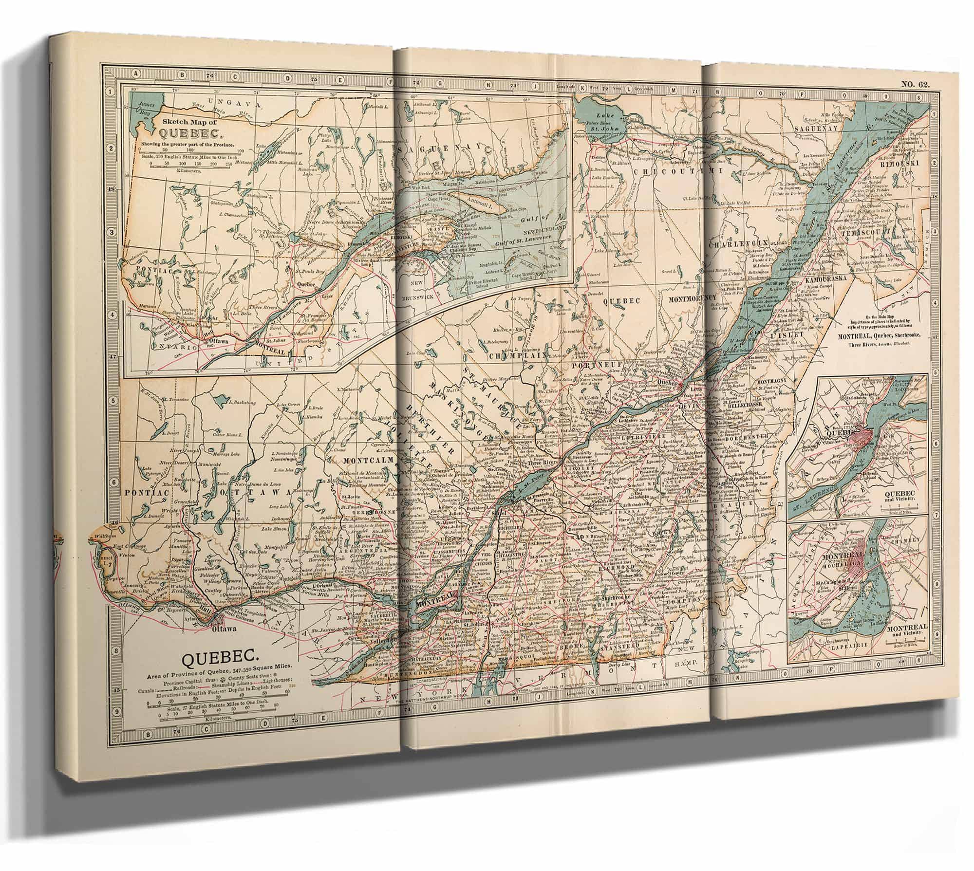 Framed Quebec Vintage Map - Ornate Embellishment Frame with Print