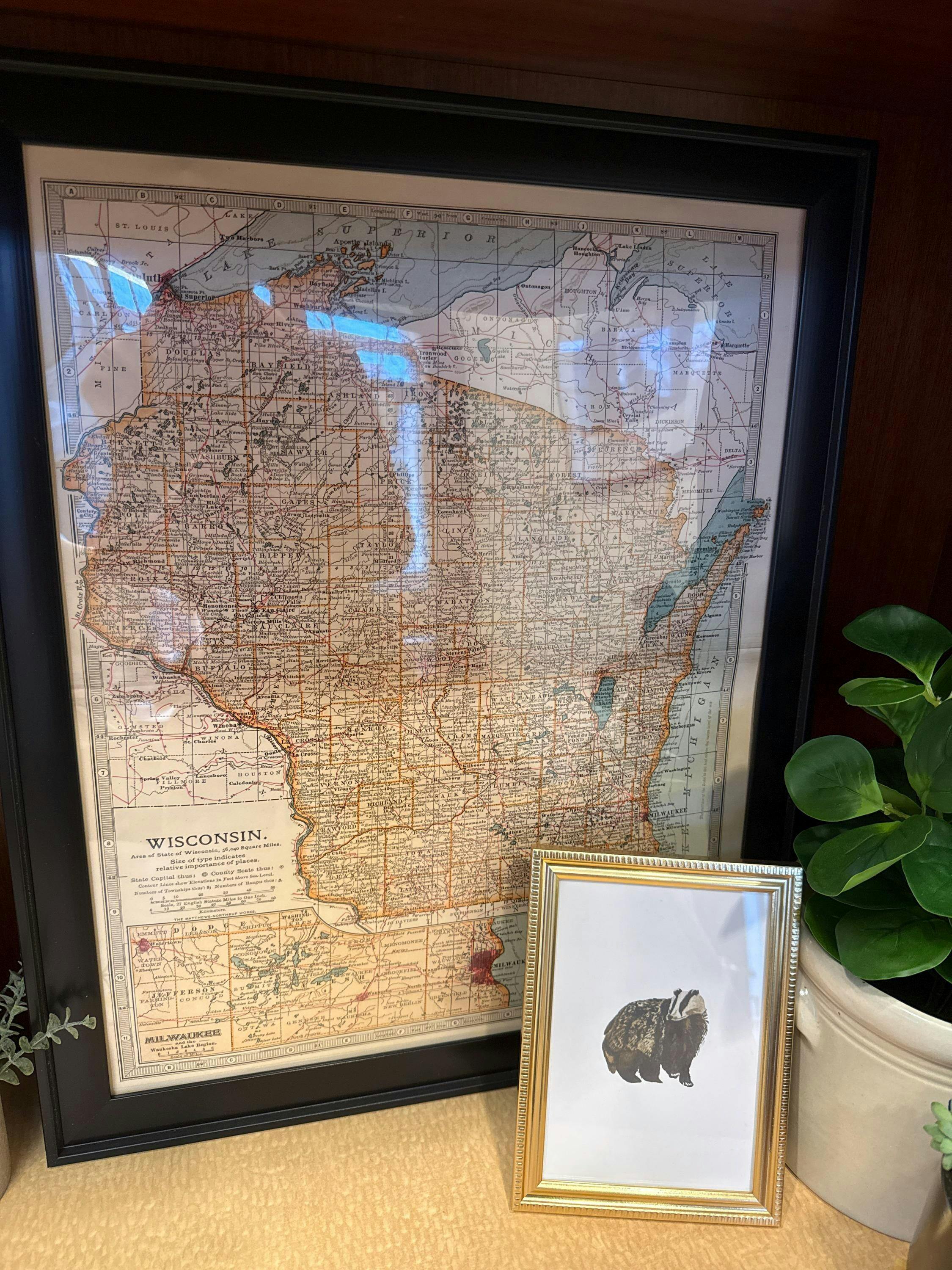 Framed Wisconsin Vintage Map - Ornate Embellishment Frame with Print