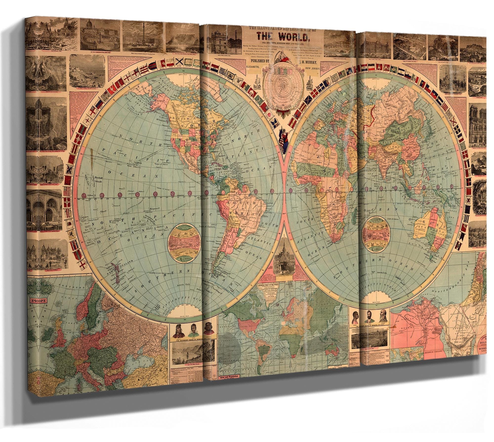 • Bella Frye Home & Garden > Decor > Artwork Framed World 1883 Vintage Map - Ornate Embellishment Frame with Print