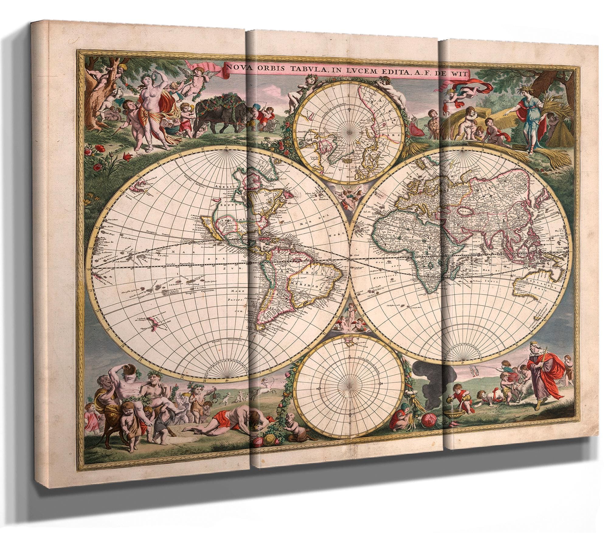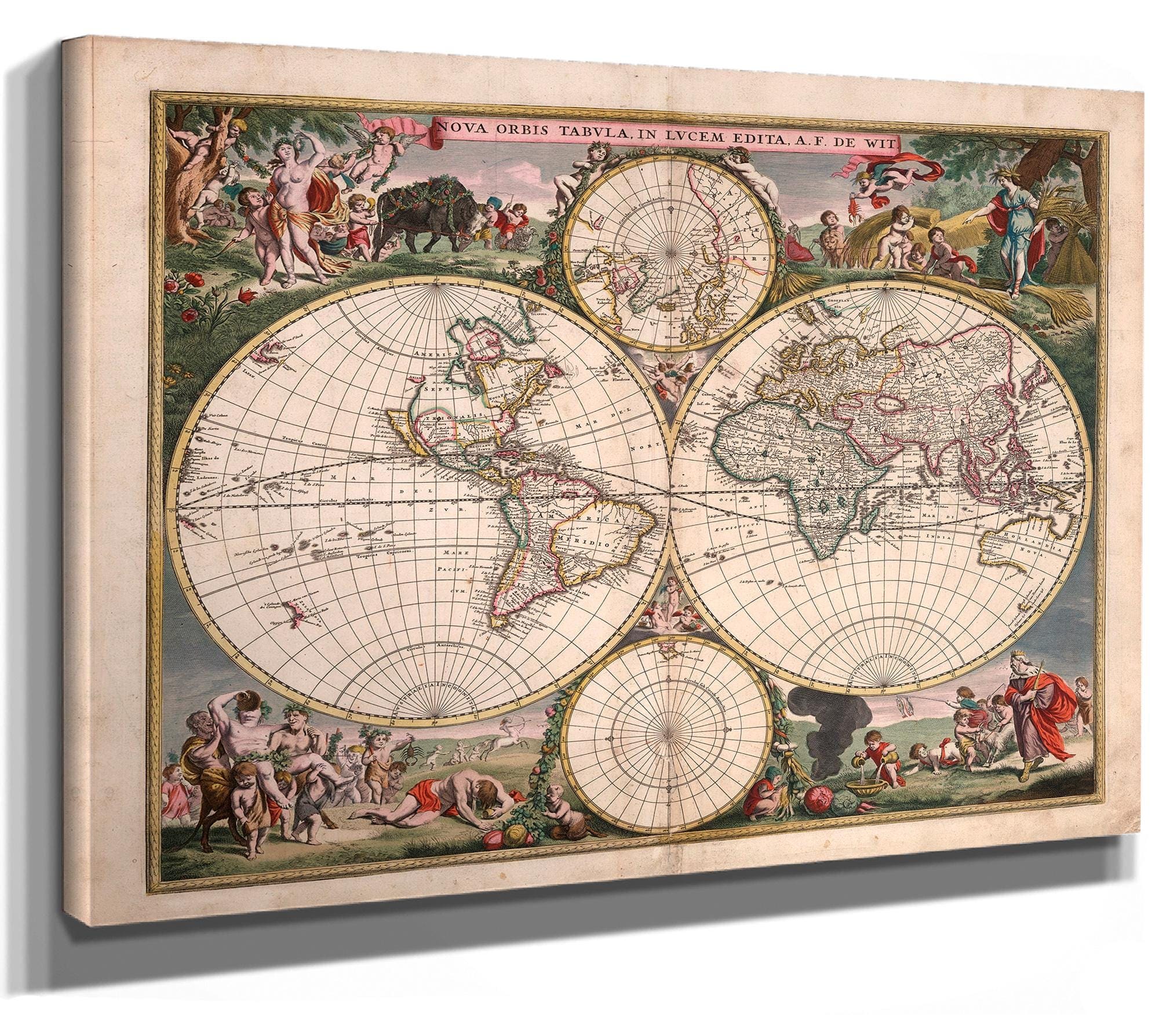 • Bella Frye Home & Garden > Decor > Artwork Framed World map (Nova orbis tabula in lucem edita A. F. de Wit) Vintage Map - Ornate Embellishment Frame with Print