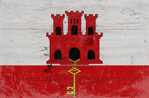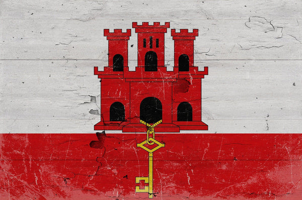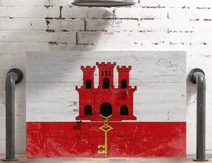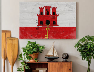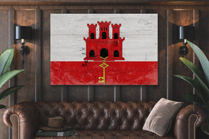 • Gibraltar Flag Wall Art - Vintage Gibraltar Flag Sign Weathered Wood Style on Canvas