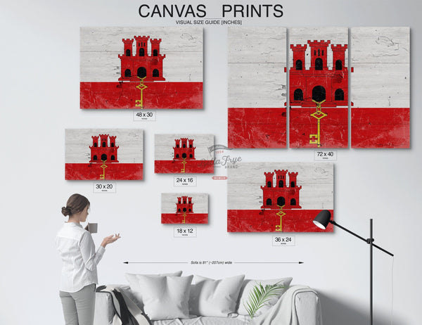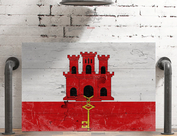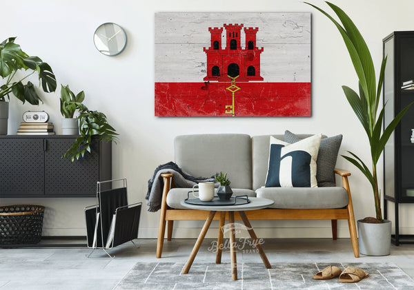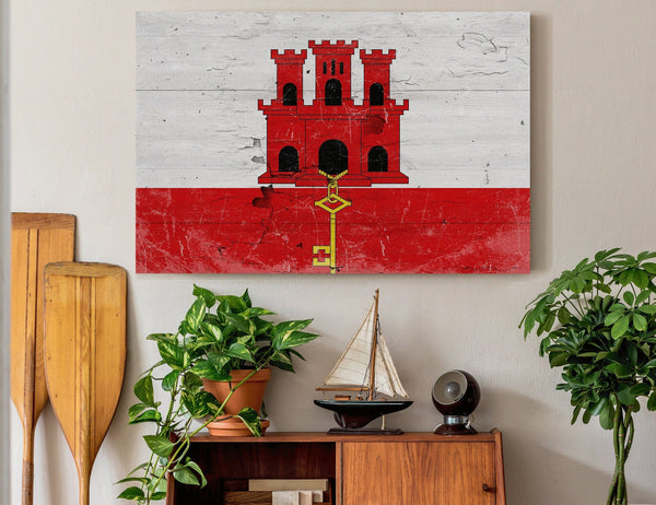 • Bella Frye Home & Garden > Decor > Artwork Gibraltar Flag Wall Art - Vintage Gibraltar Flag Sign Weathered Wood Style on Canvas