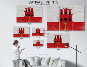 Gibraltar Flag Wall Art - Vintage Gibraltar Flag Sign Weathered Wood Style on Canvas
